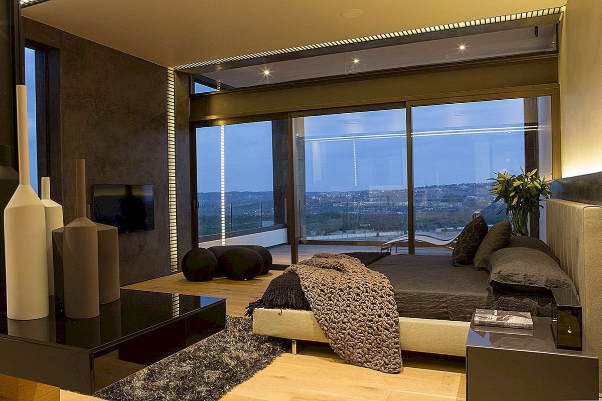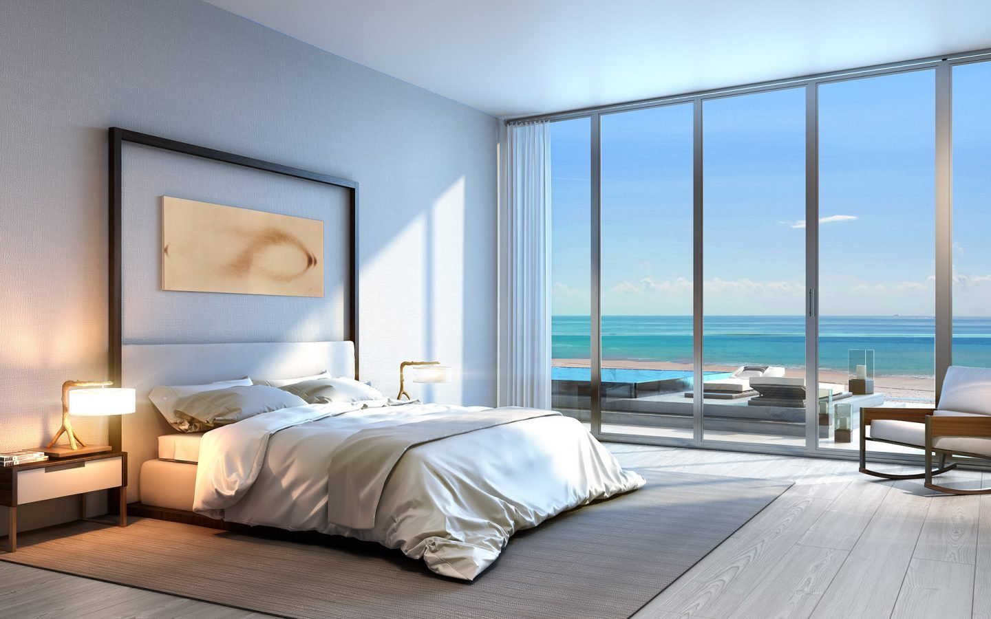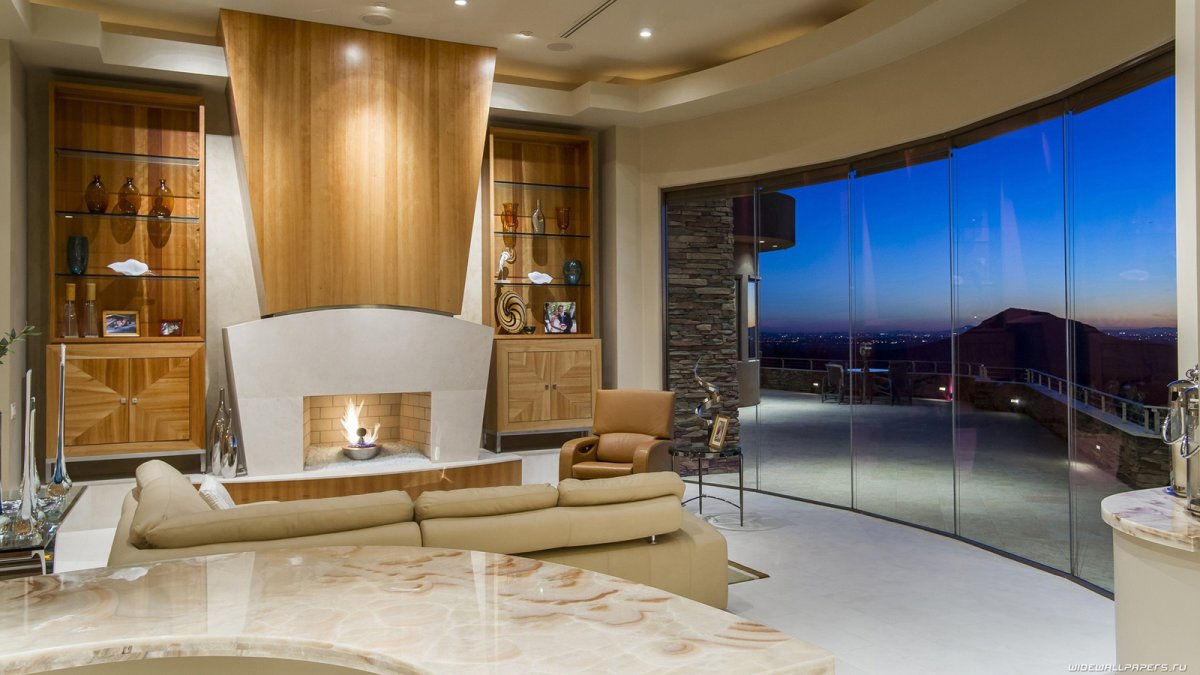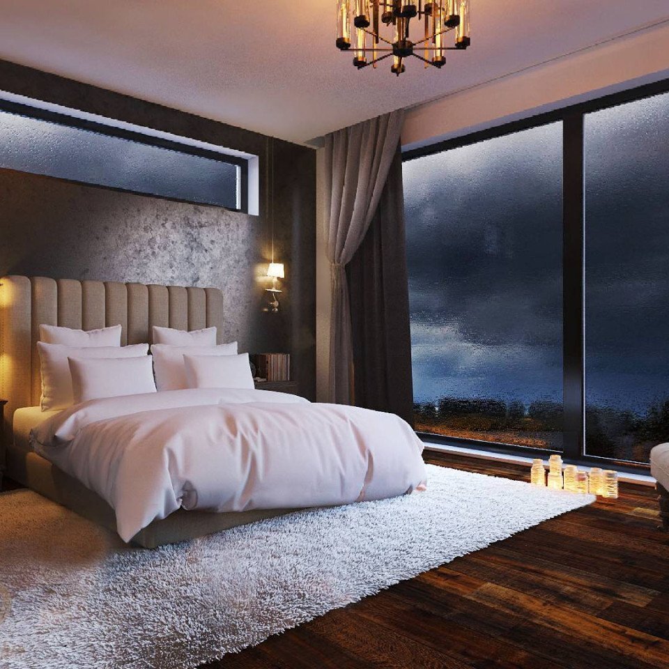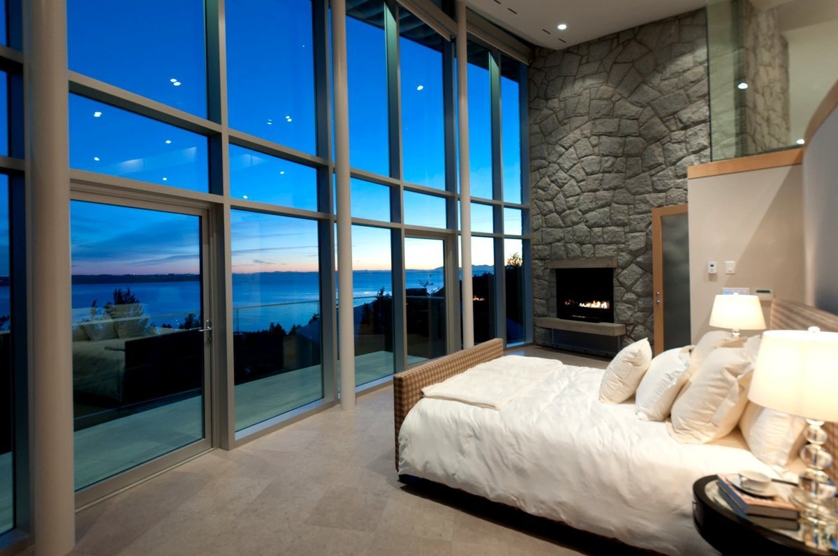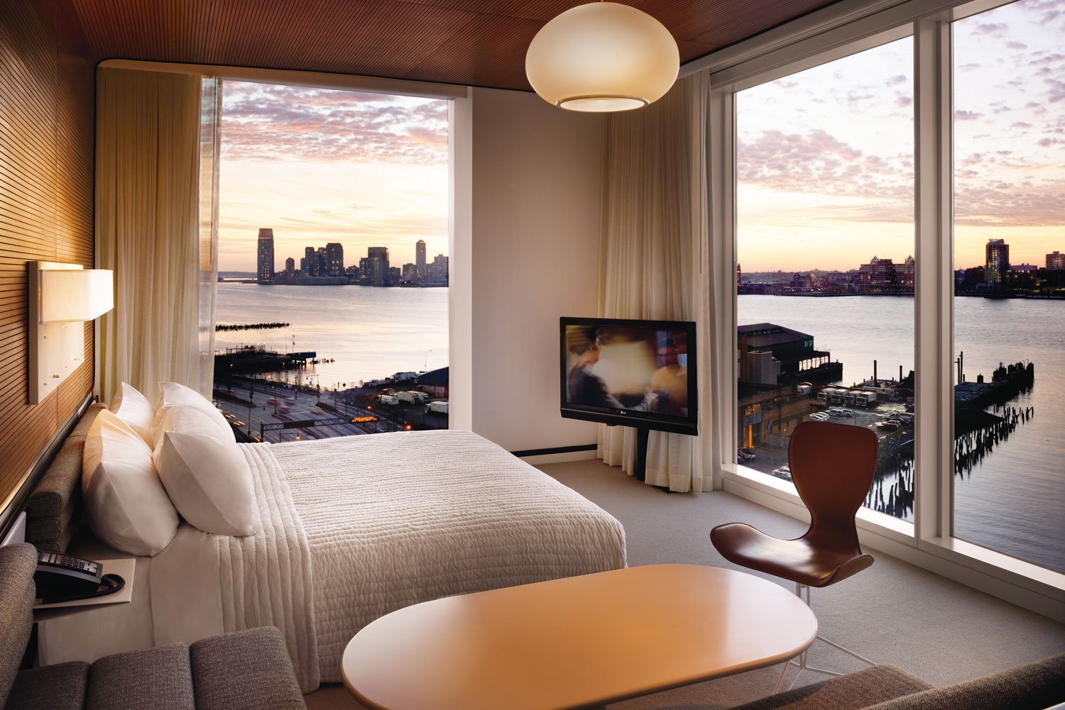 Спальня в пентхаусе в Нью Йорке с круглой кроватью
