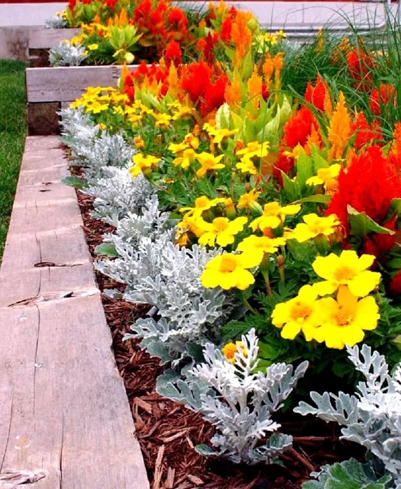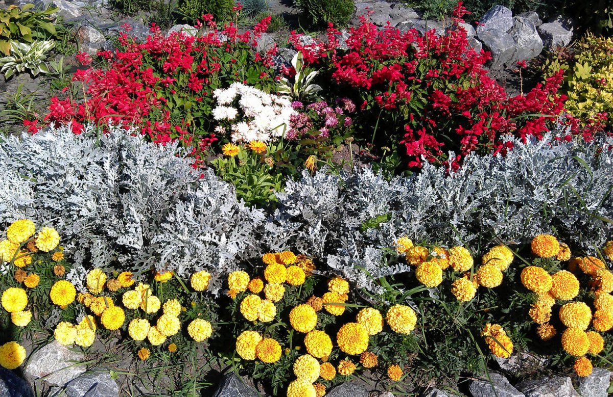 Клумбы бархатцы Сальвия цинерария