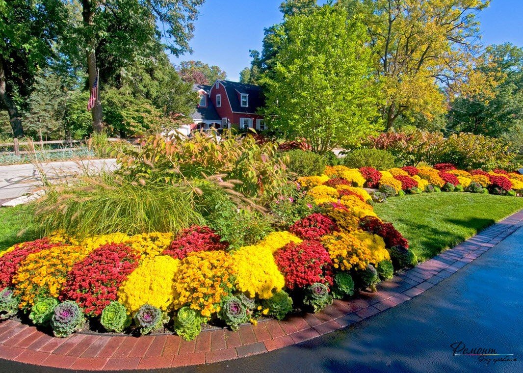 Хризантема мультифлора на клумбе