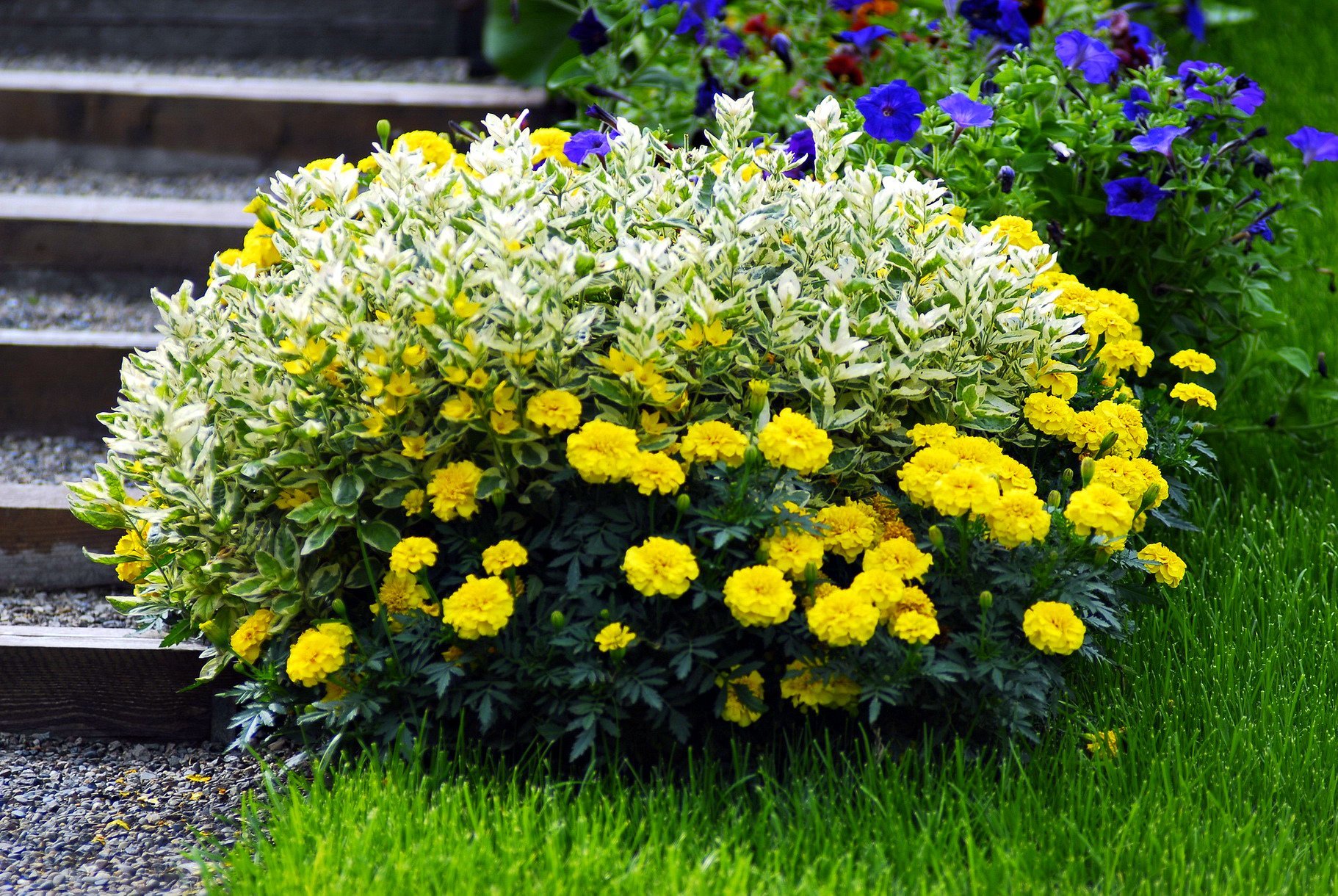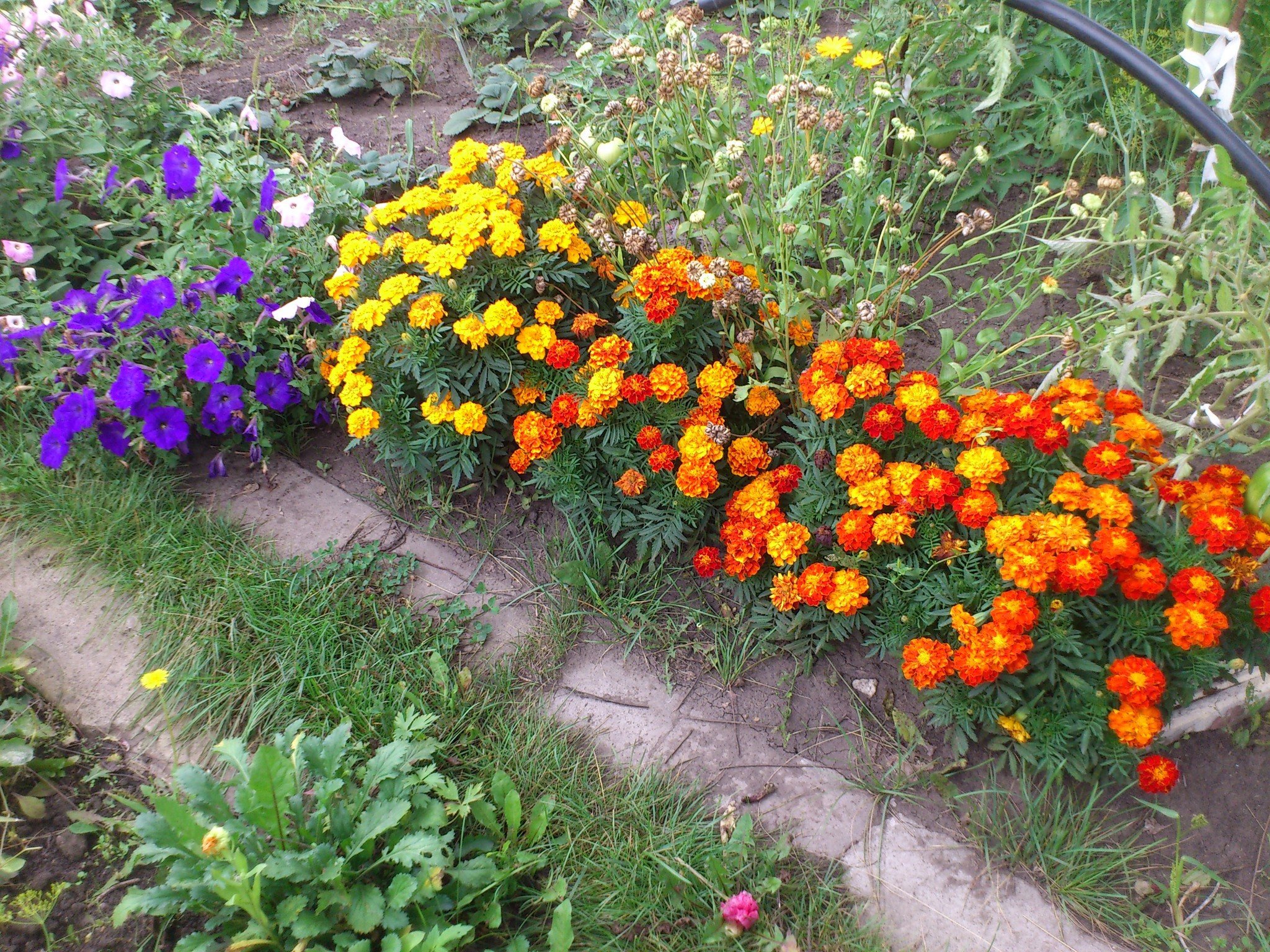 Клумба с бархатцами и петунией