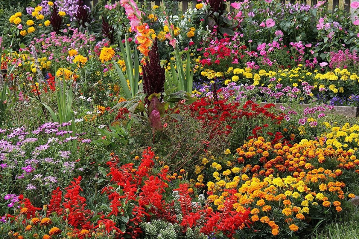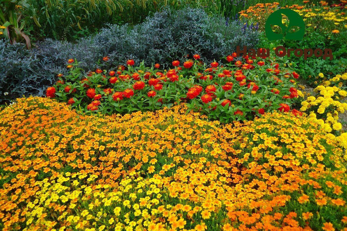Миксбордер циннии бархатцы