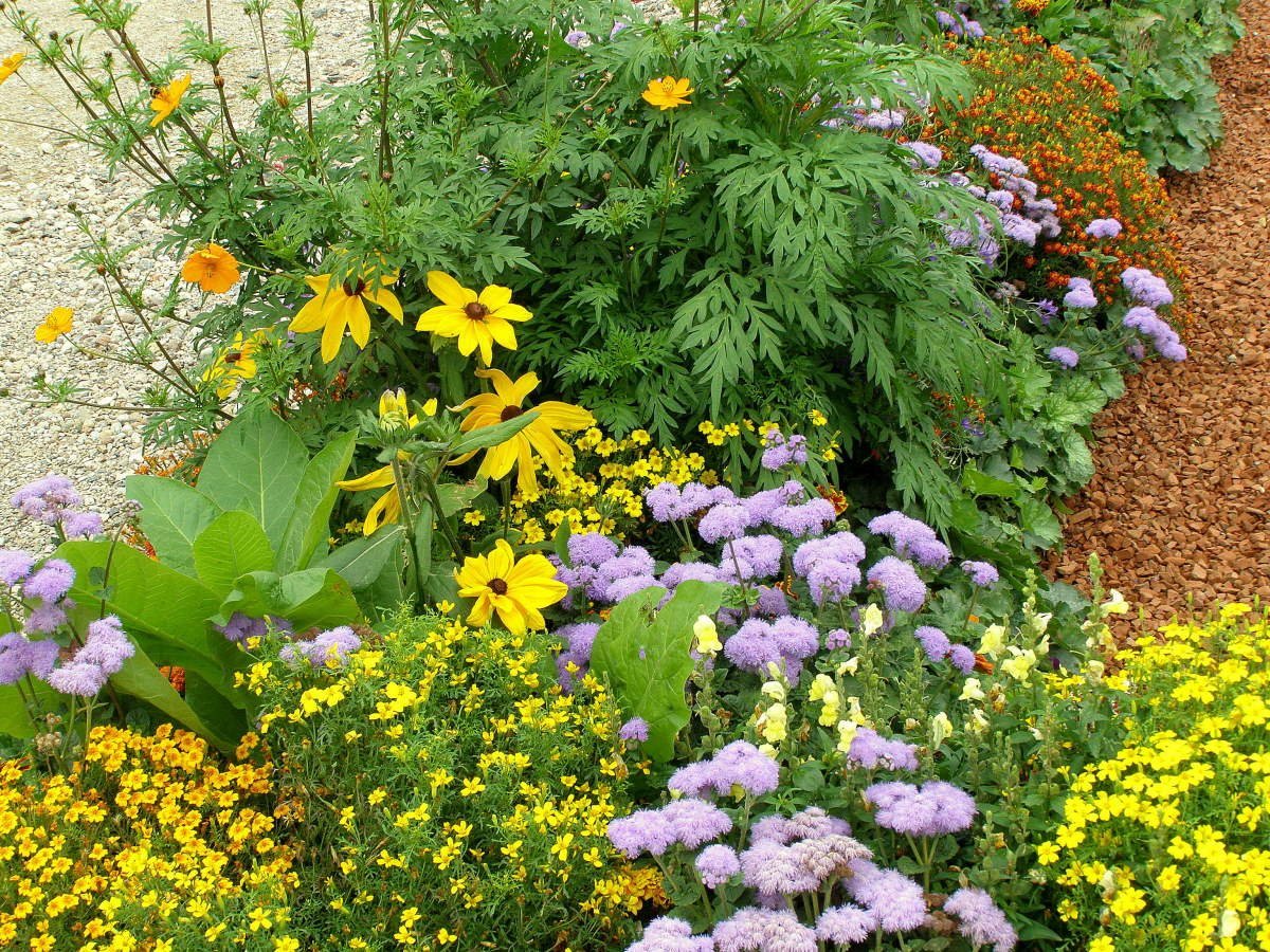 Цветник агератум бархатцы цинерария
