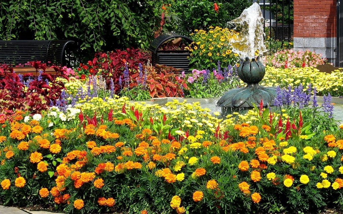 Клумба цинии эшшольция бархатцы