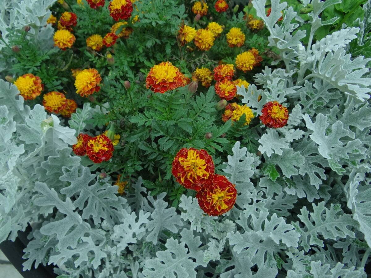 Цинерария серебристая с бархатцами