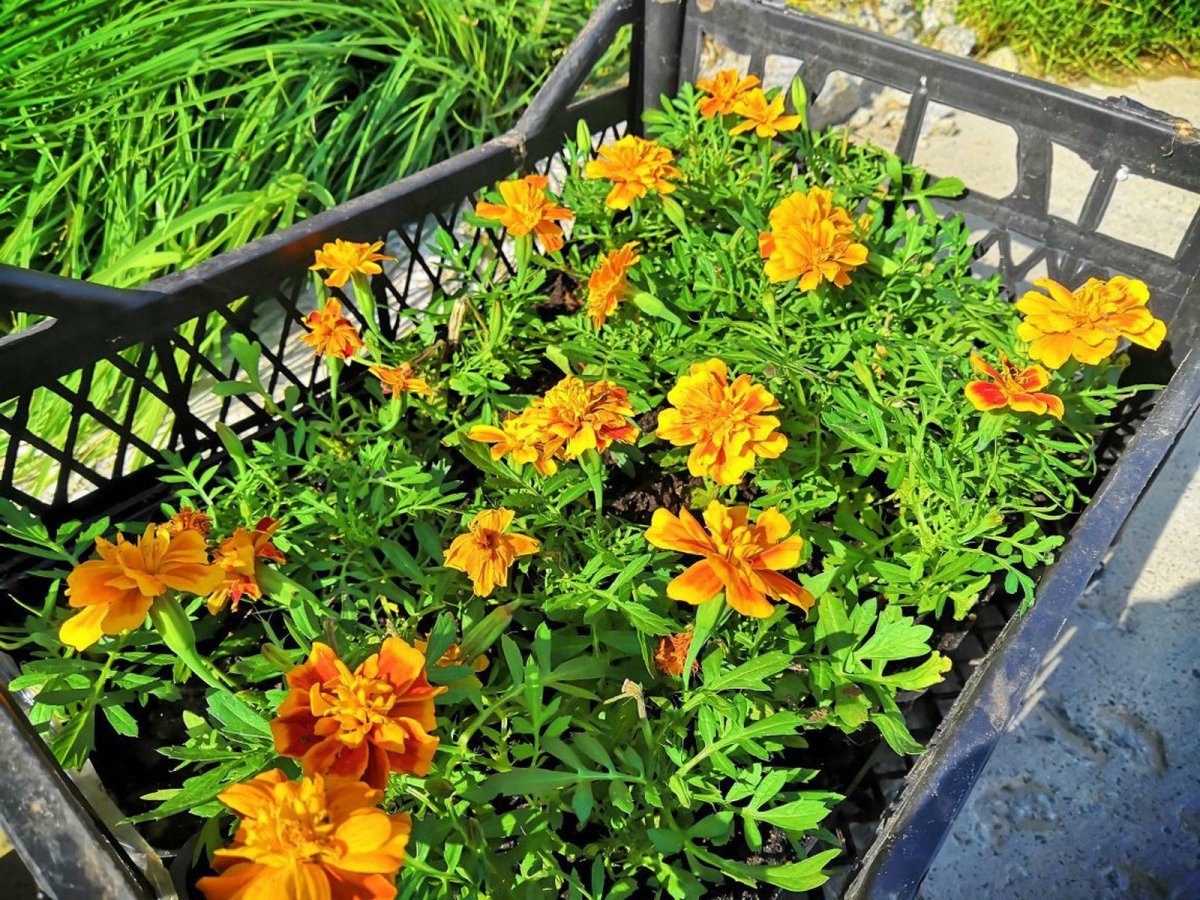 Бархатцы в вазонах