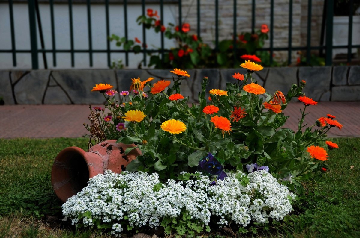 Алиссум и бархатцы