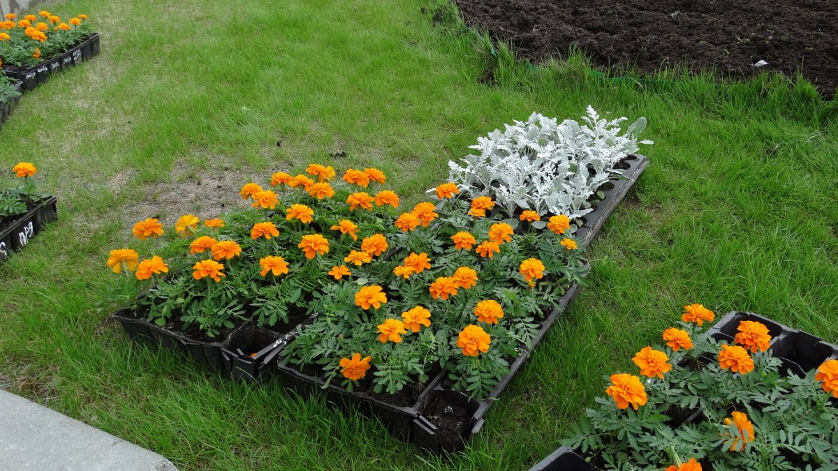 Рабатка из бархатцев и цинерарии
