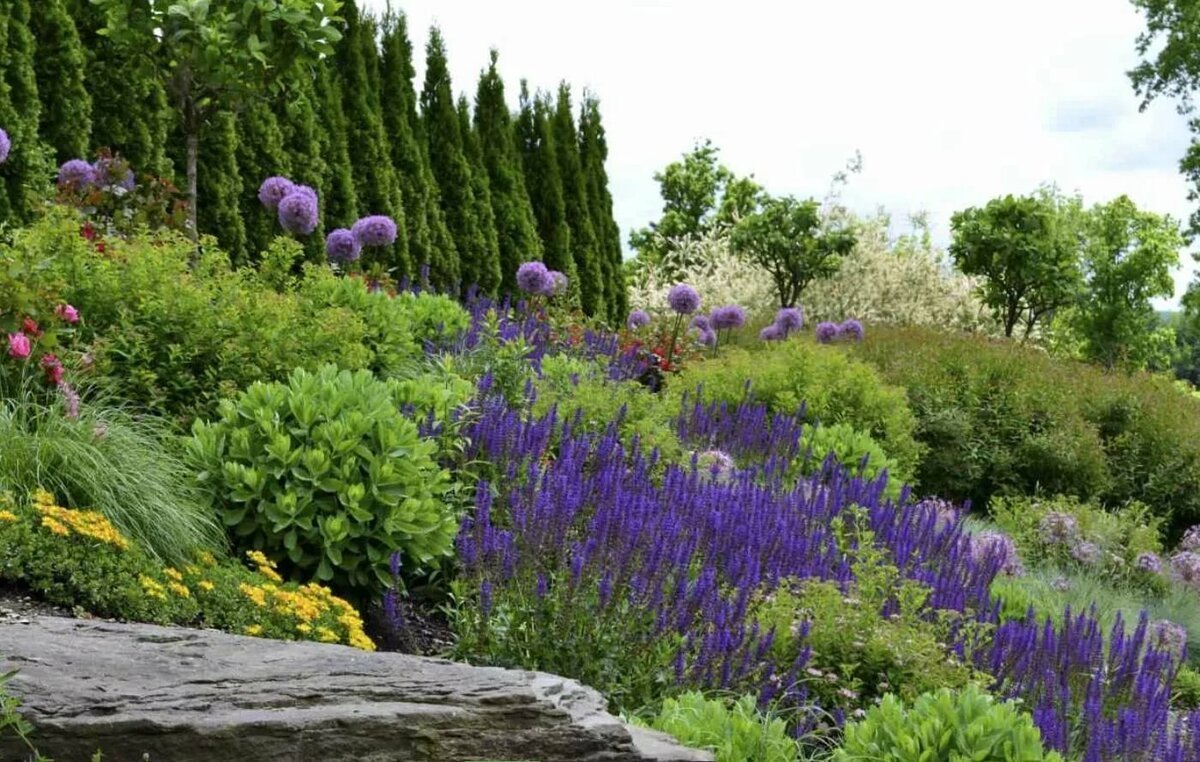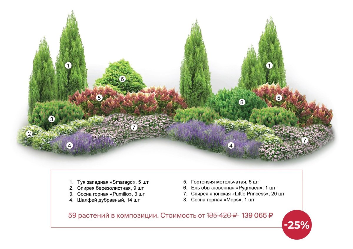 Композиция туя Смарагд , Горная сосна, гортензия, можжевельник