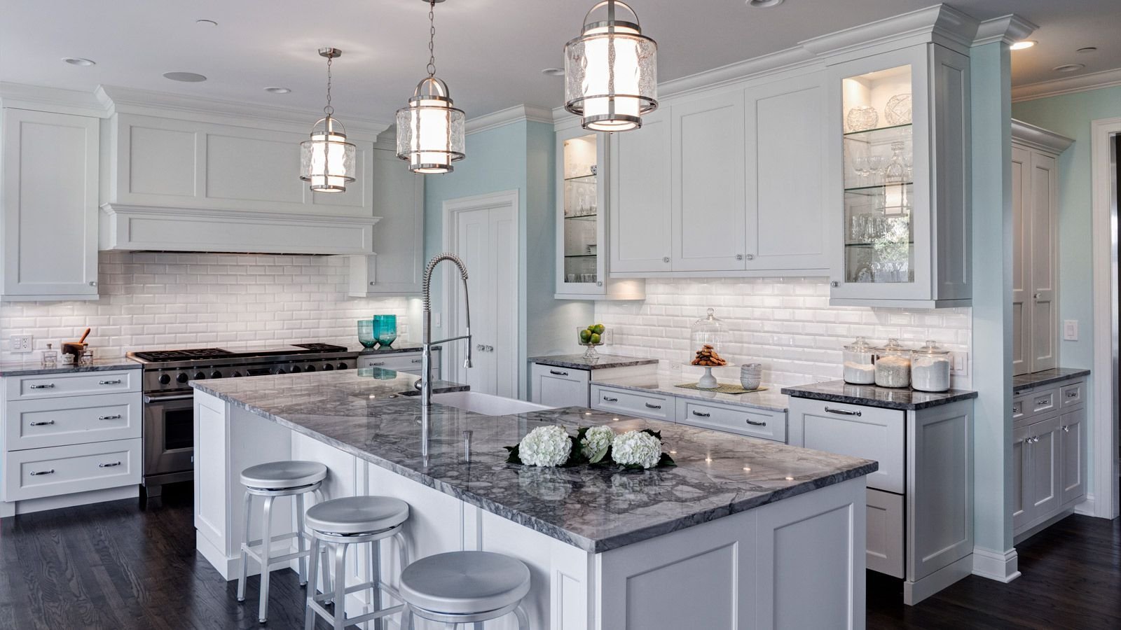 Серо-голубой цвет стен на кухне