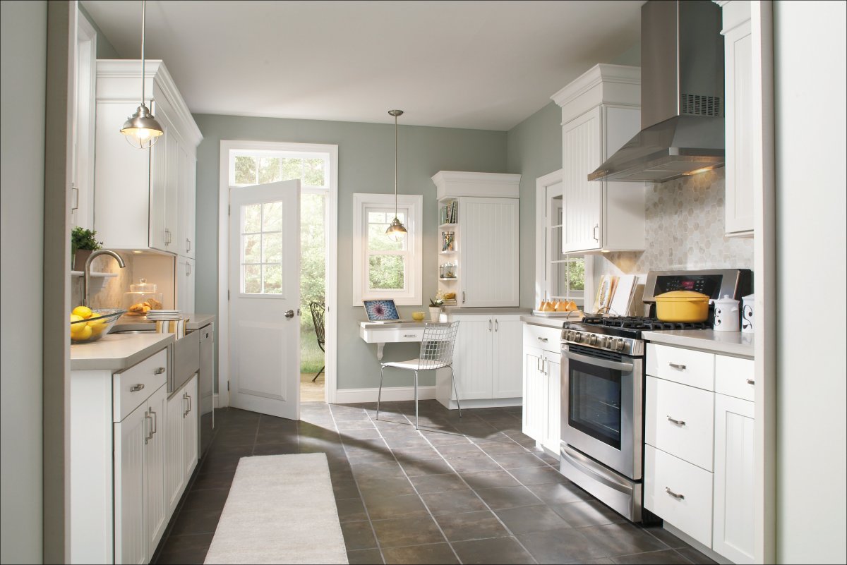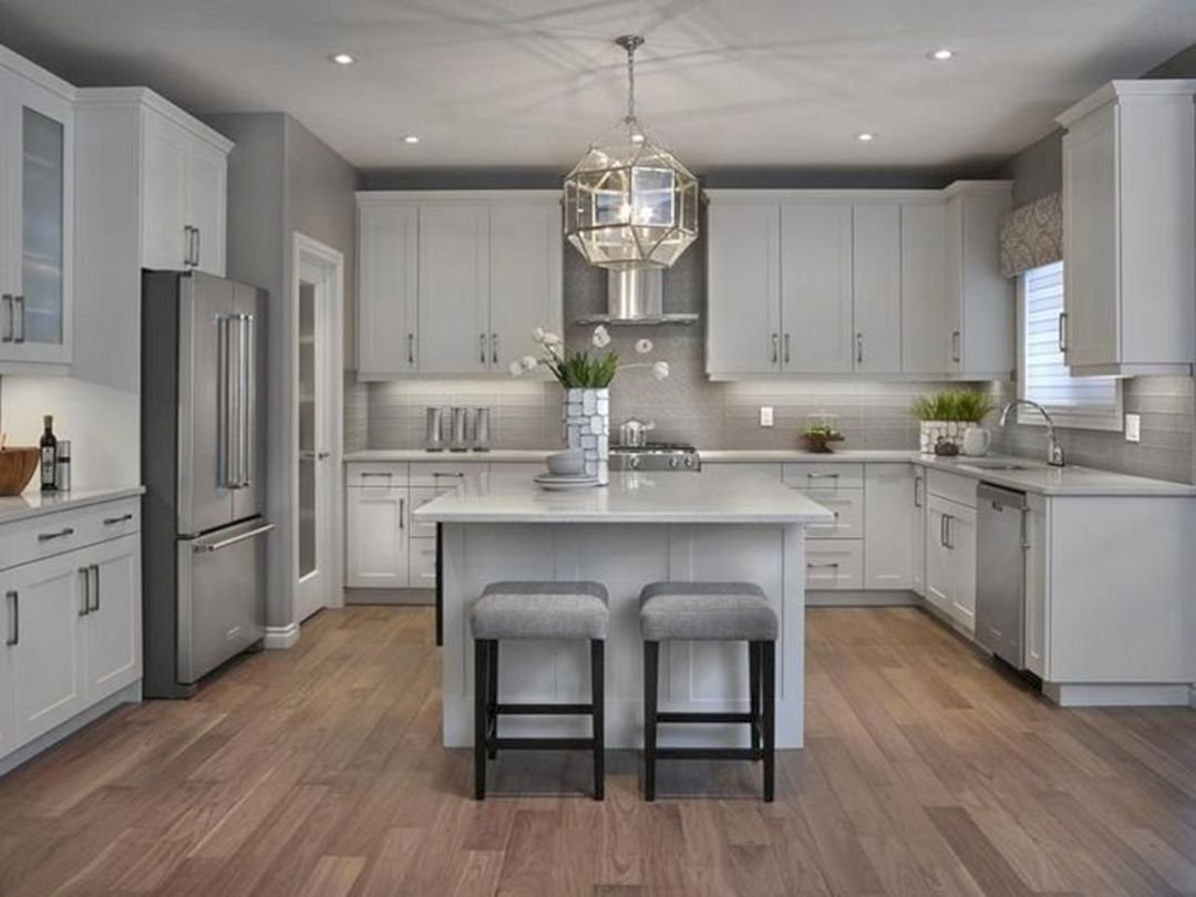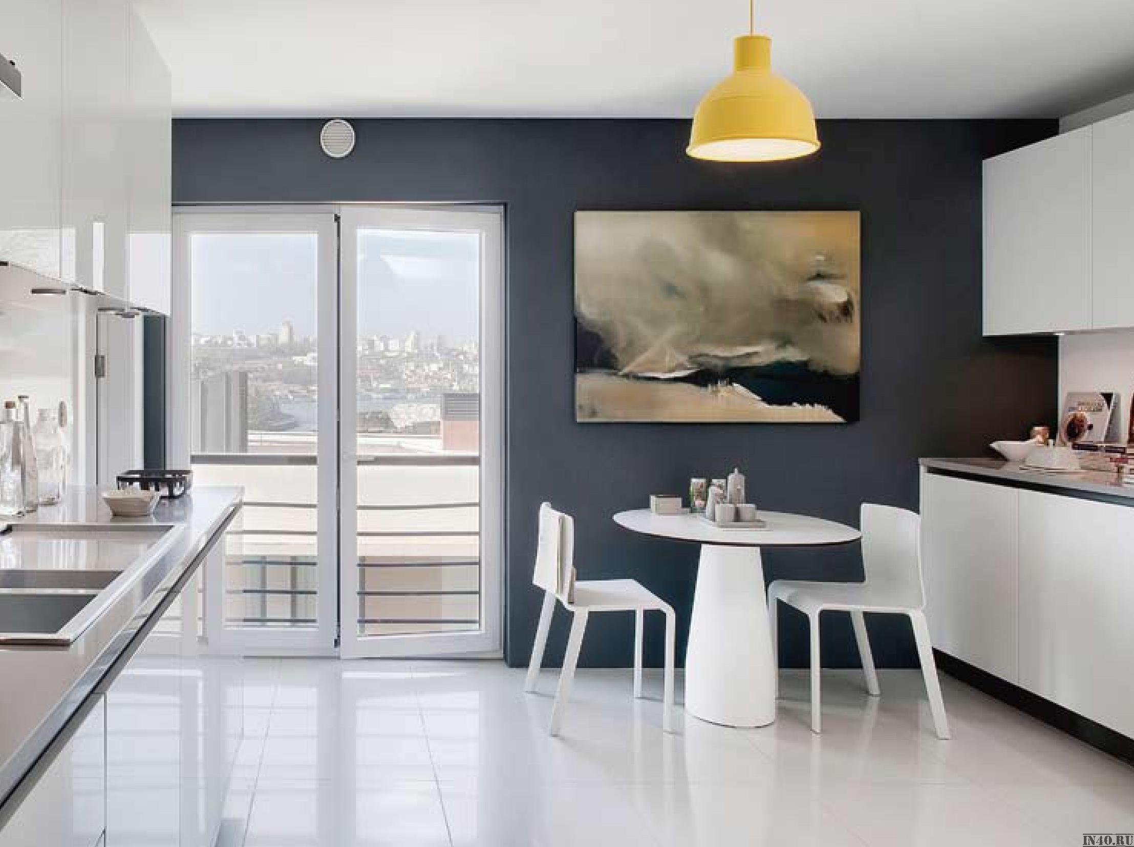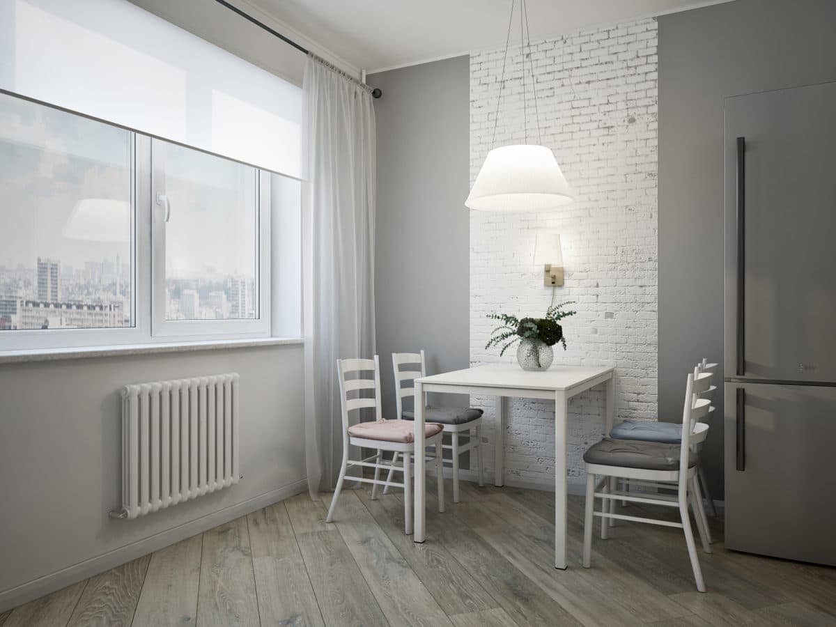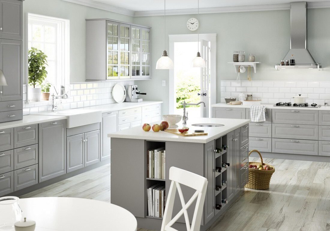 Белая кухня серые стены