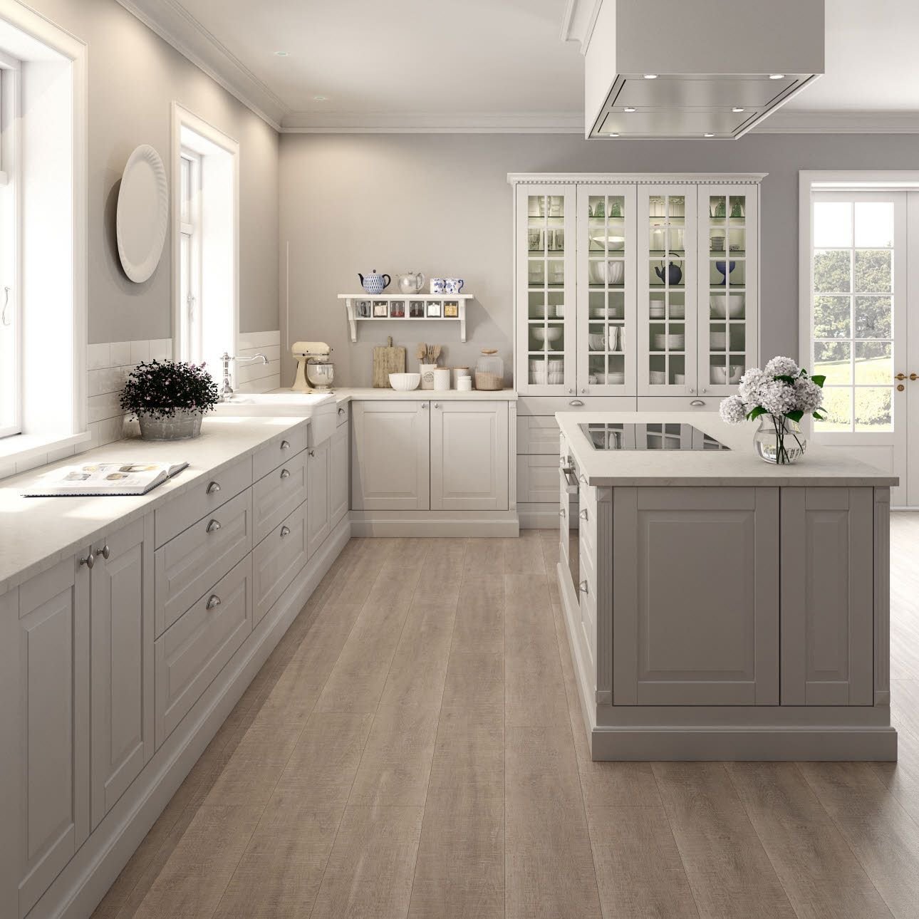 Светло серый цвет стен на кухне