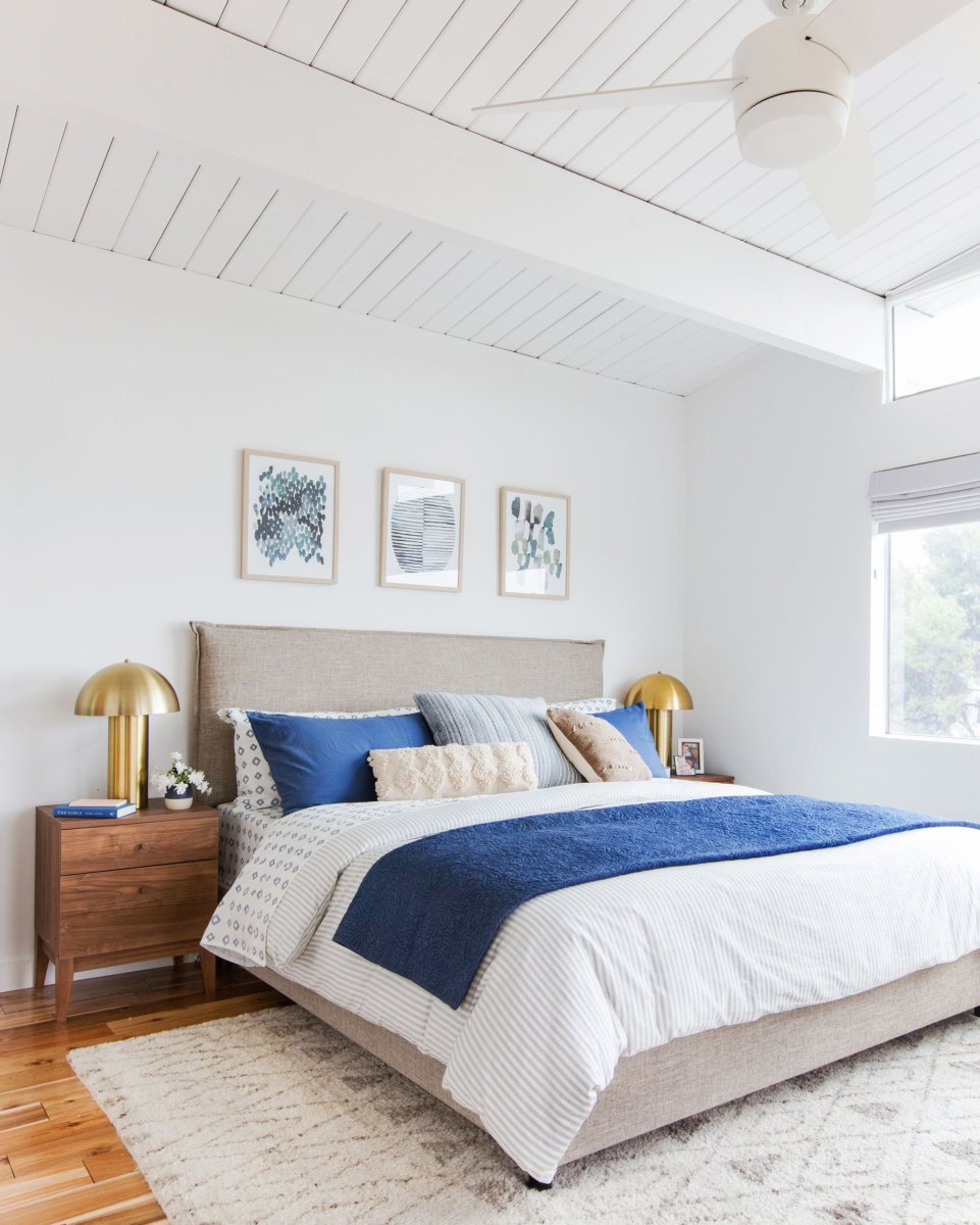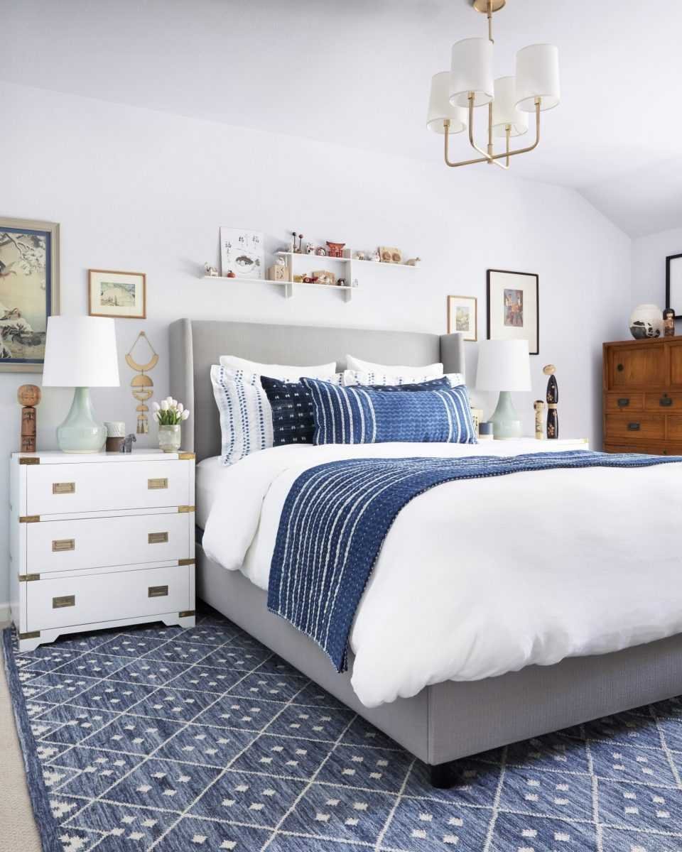 Спальня с синей кроватью