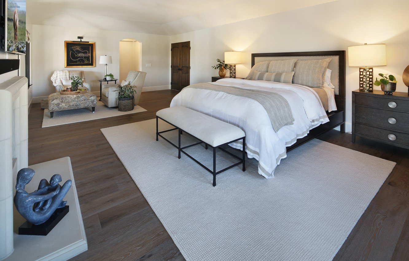 Ковер в спальне с двуспальной кроватью