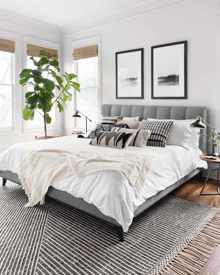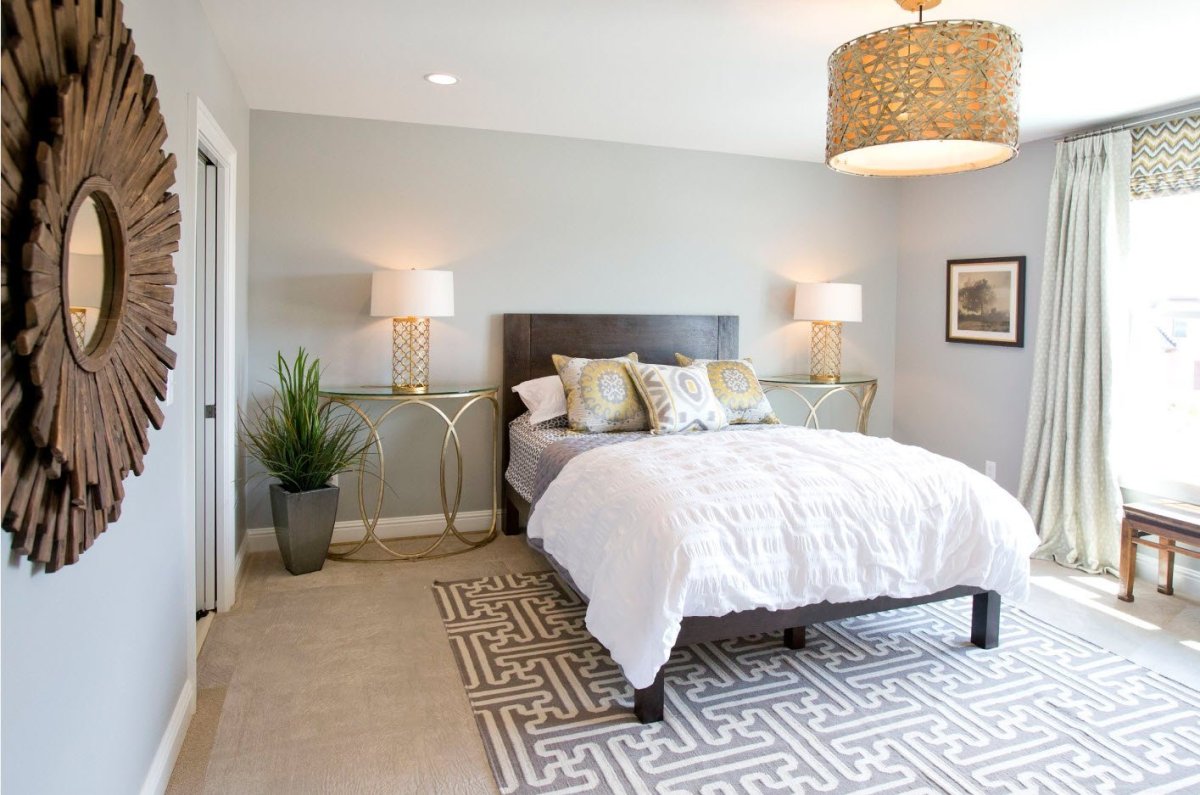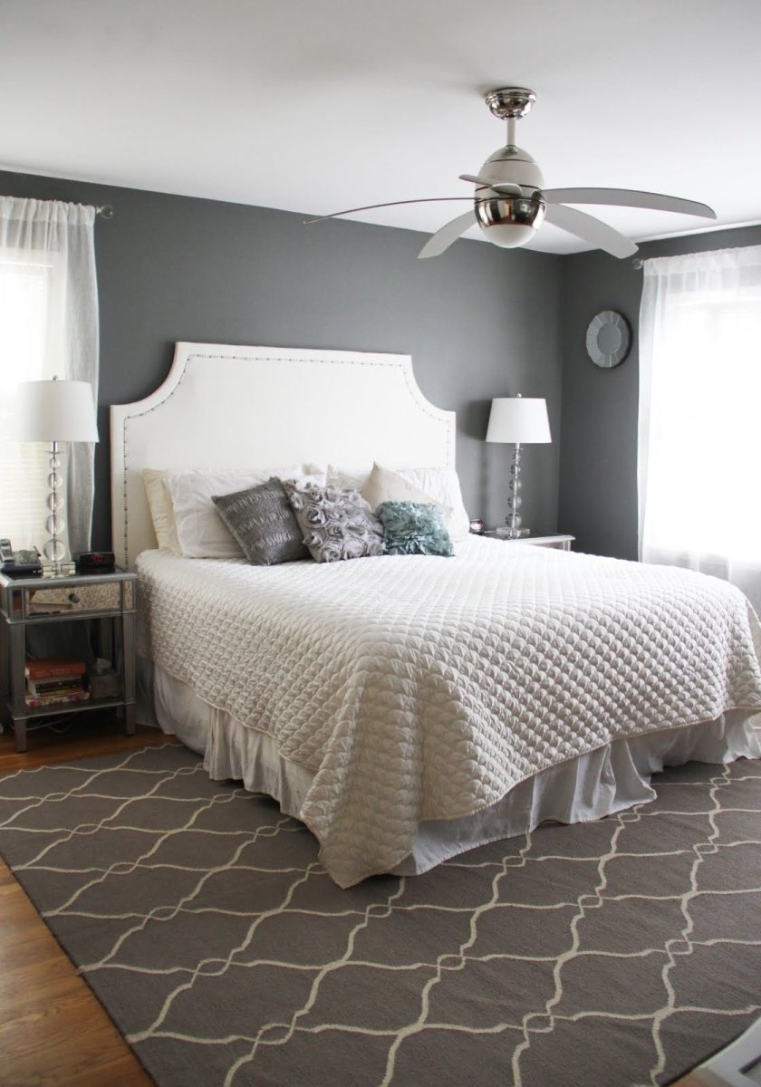 Спальня с серым полом
