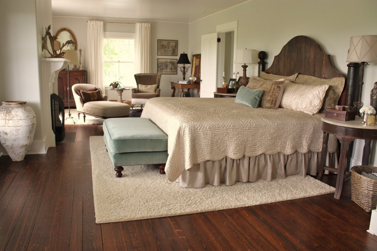 Ковер под кроватью в интерьере