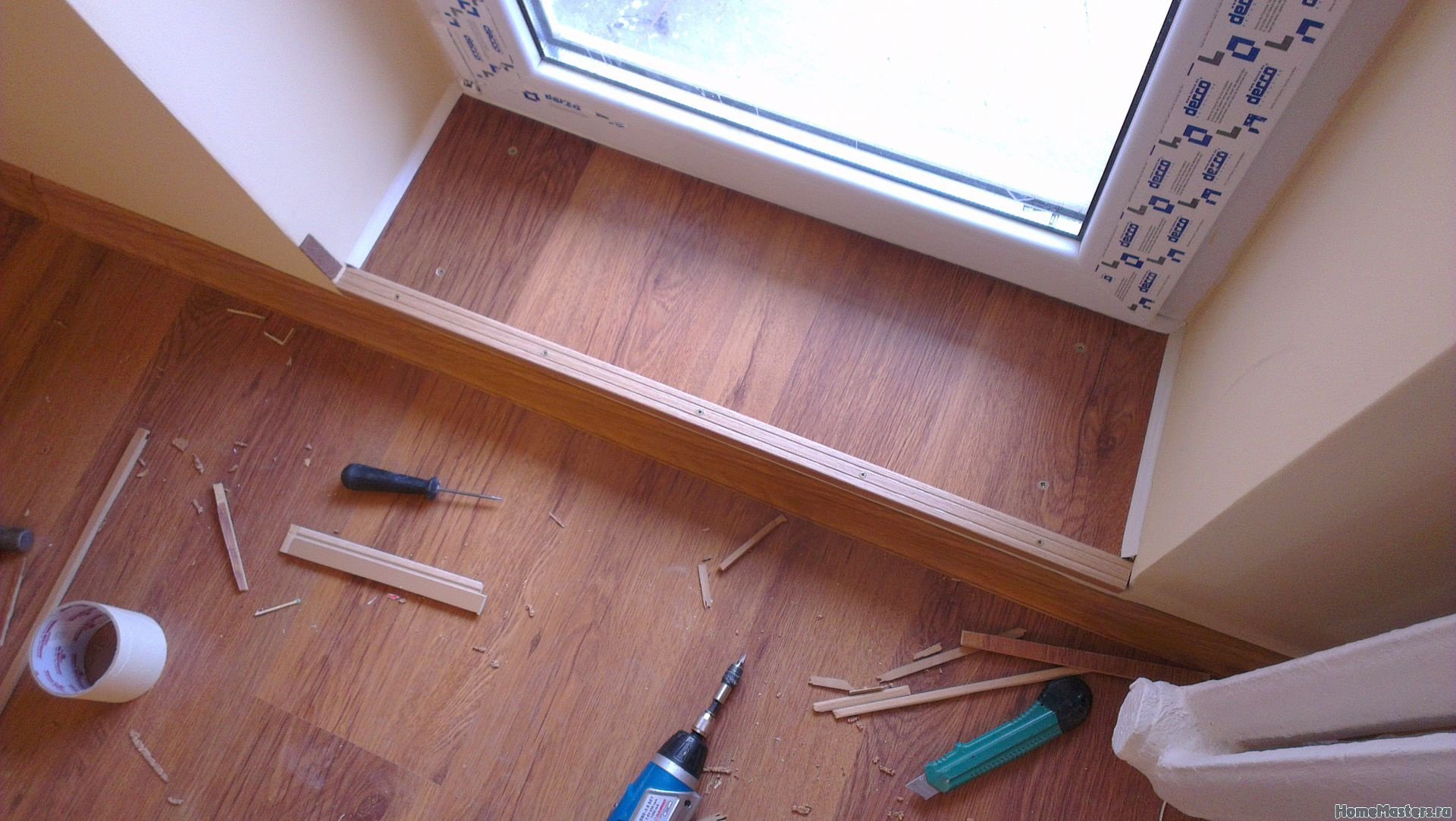 Отделка порога на балкон ламинатом