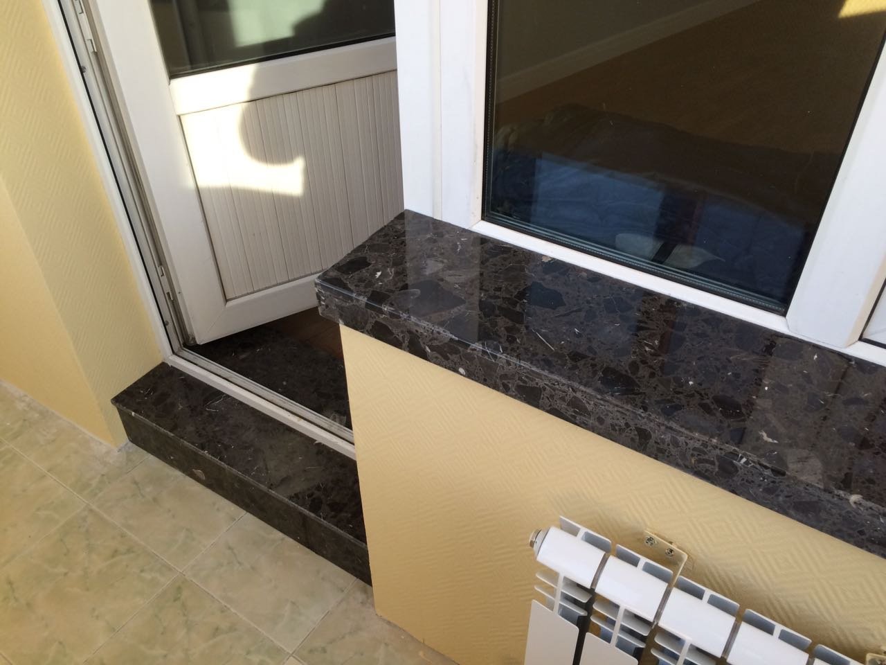 Подоконник на балконе из плитки