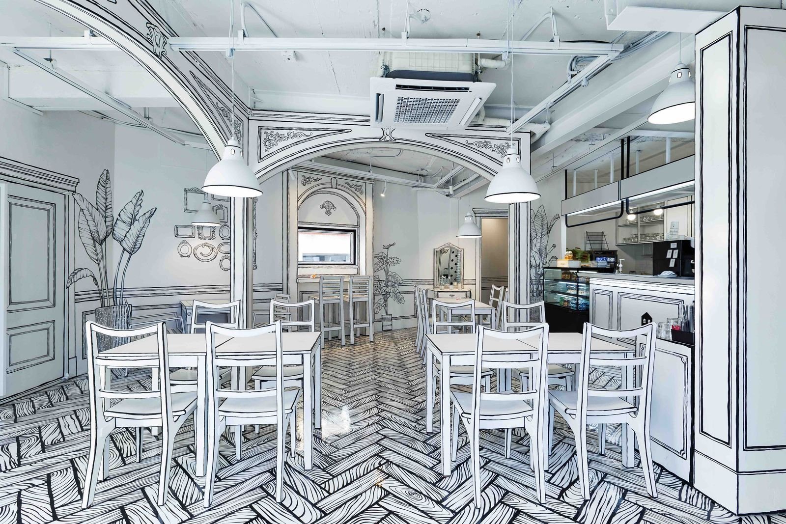 Нарисовать интерьер кафе