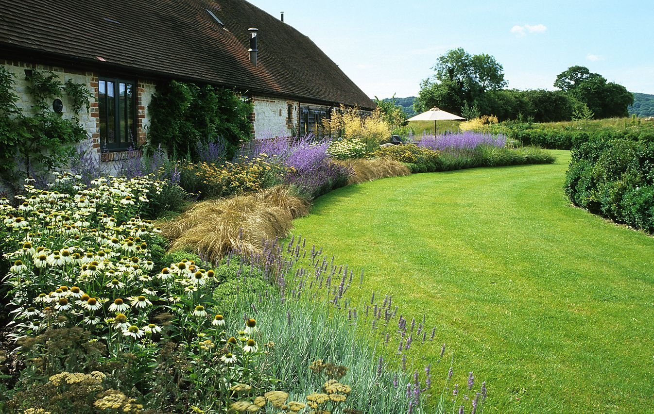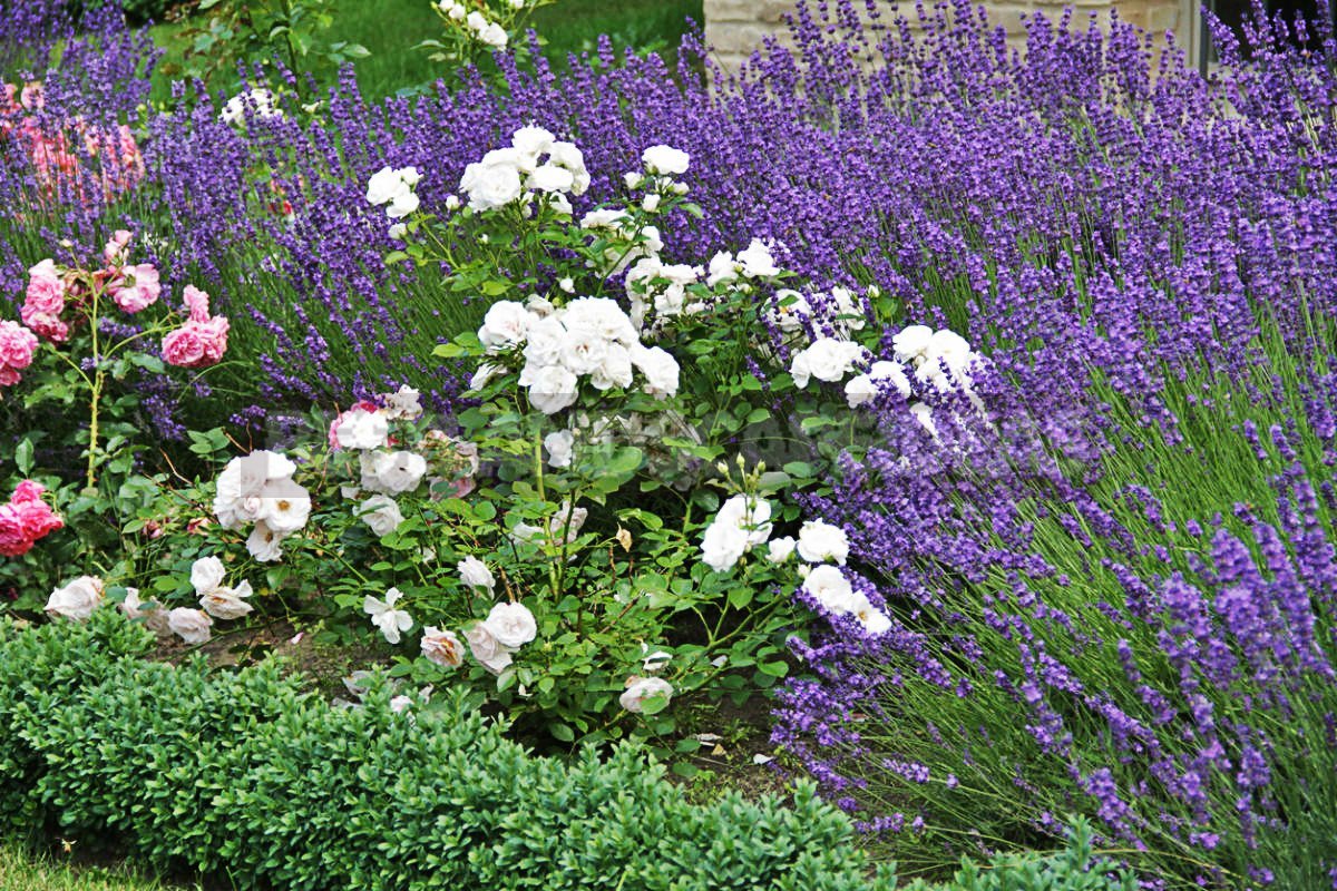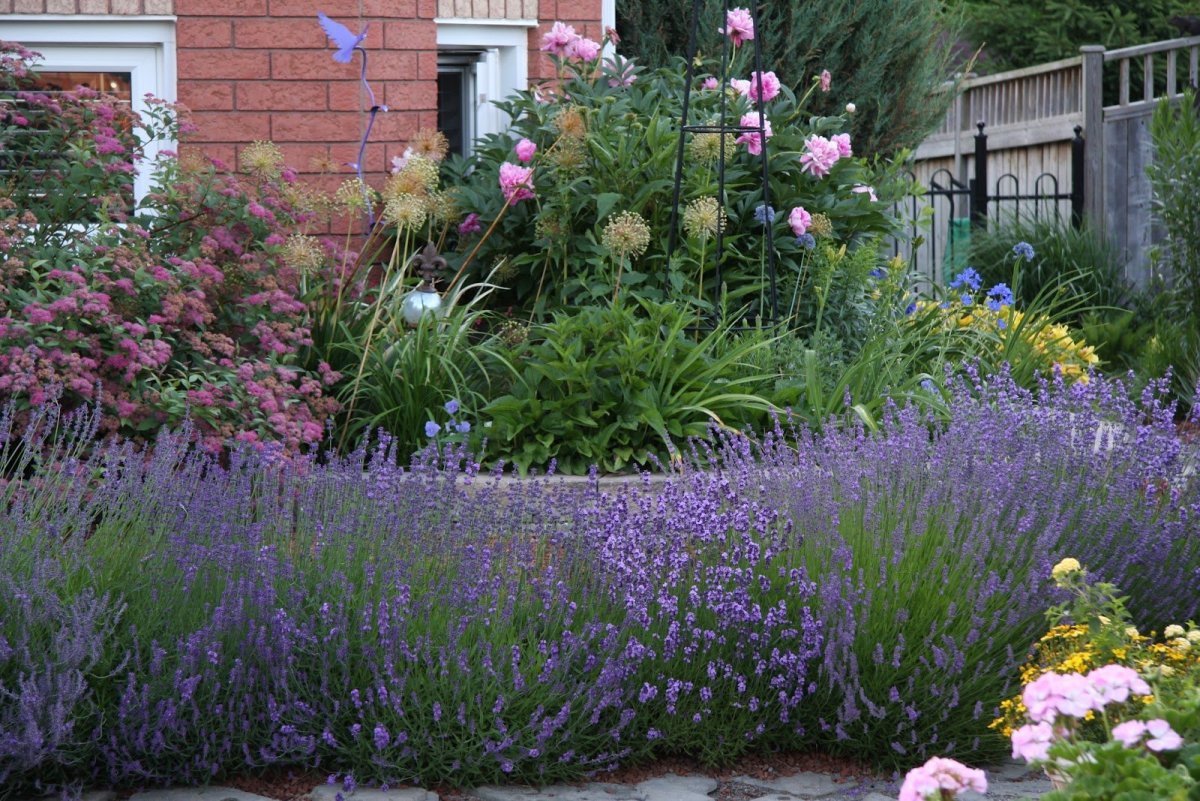 Красивые клумбы на даче с лавандовой