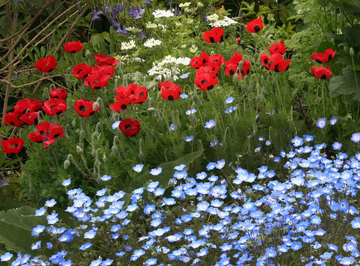Немофила на клумбе