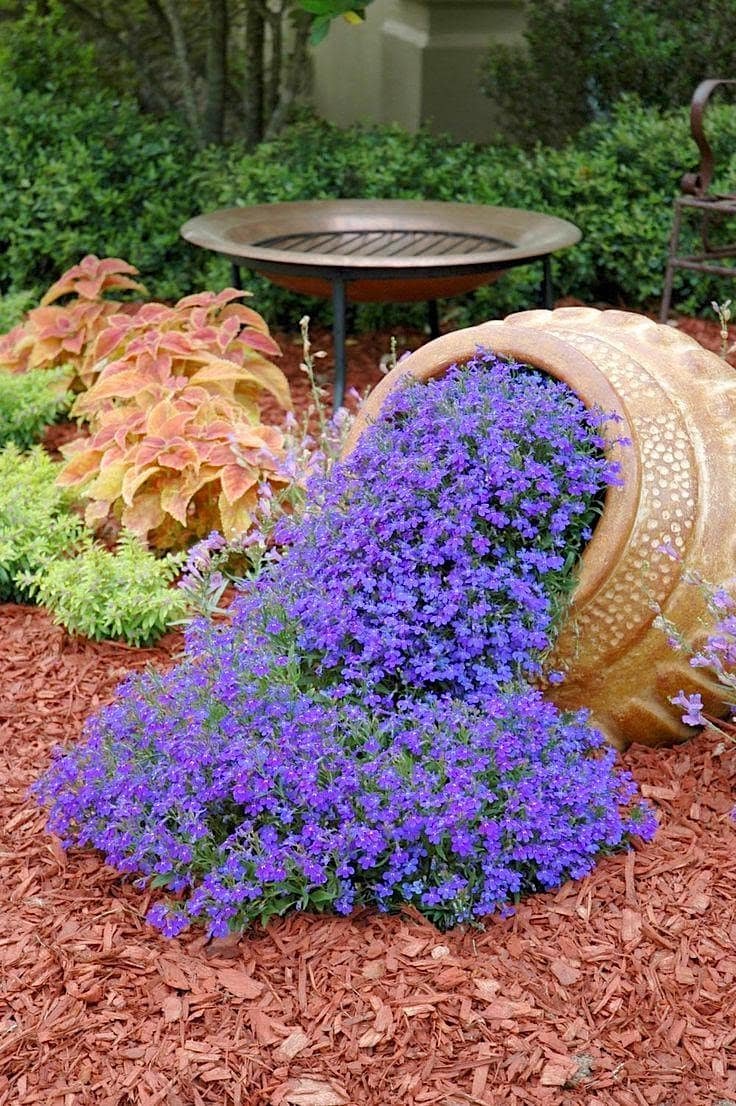 Лобелия и дельфиниум на клумбе