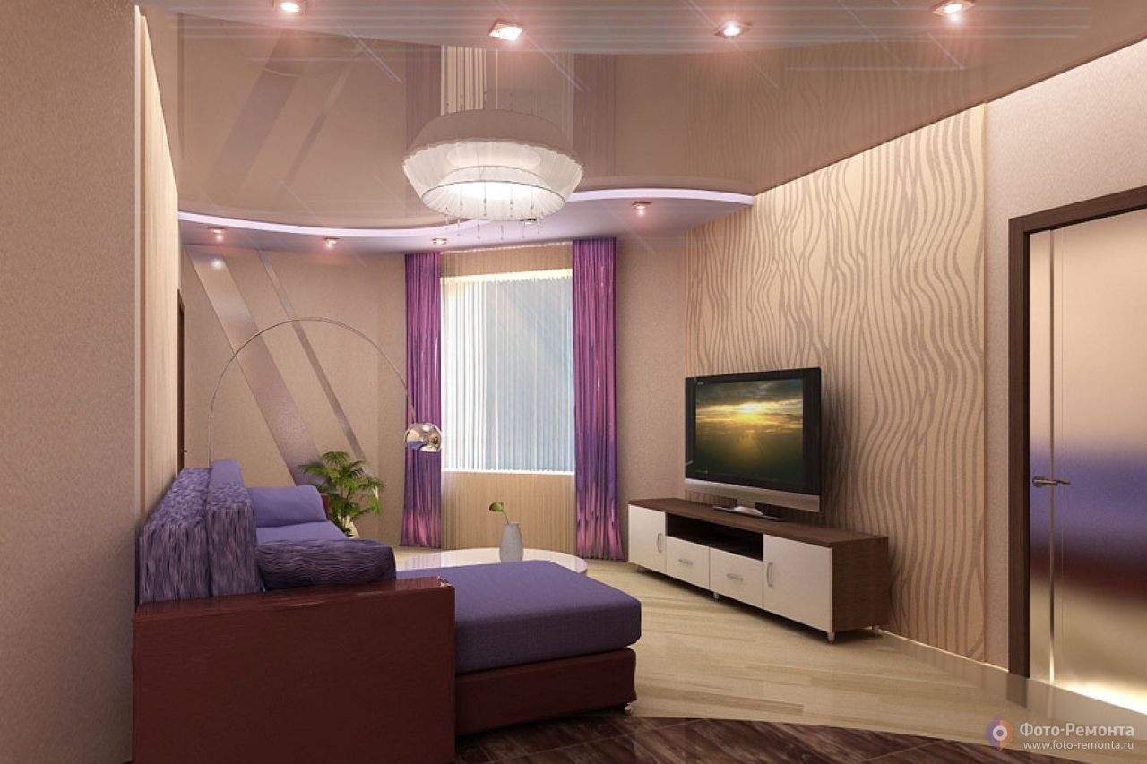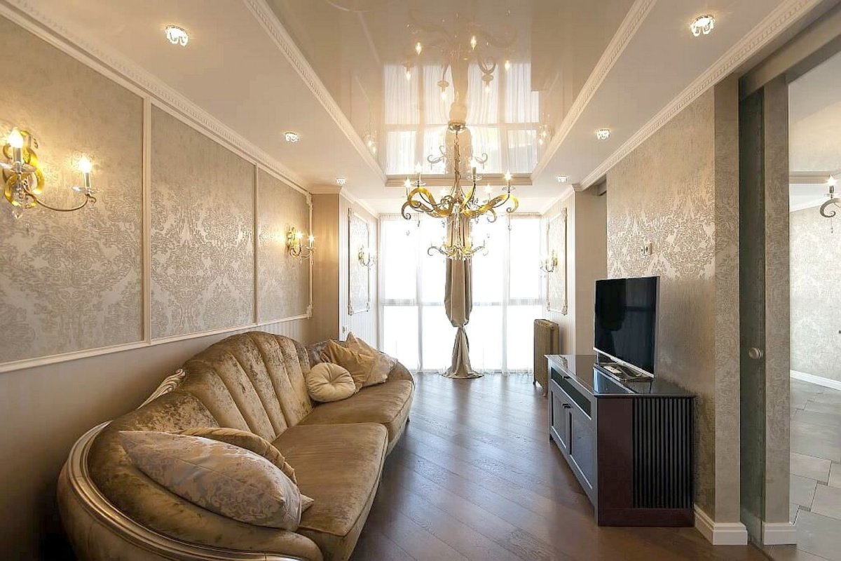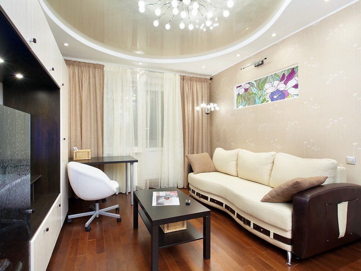 Натяжные потолки для зала в хрущевке