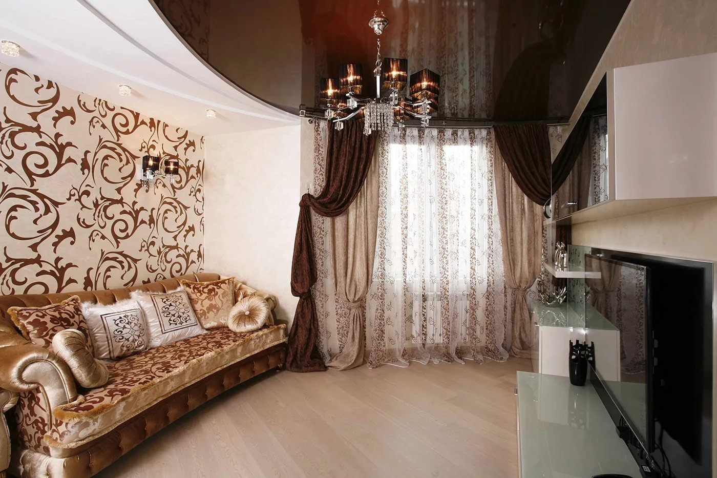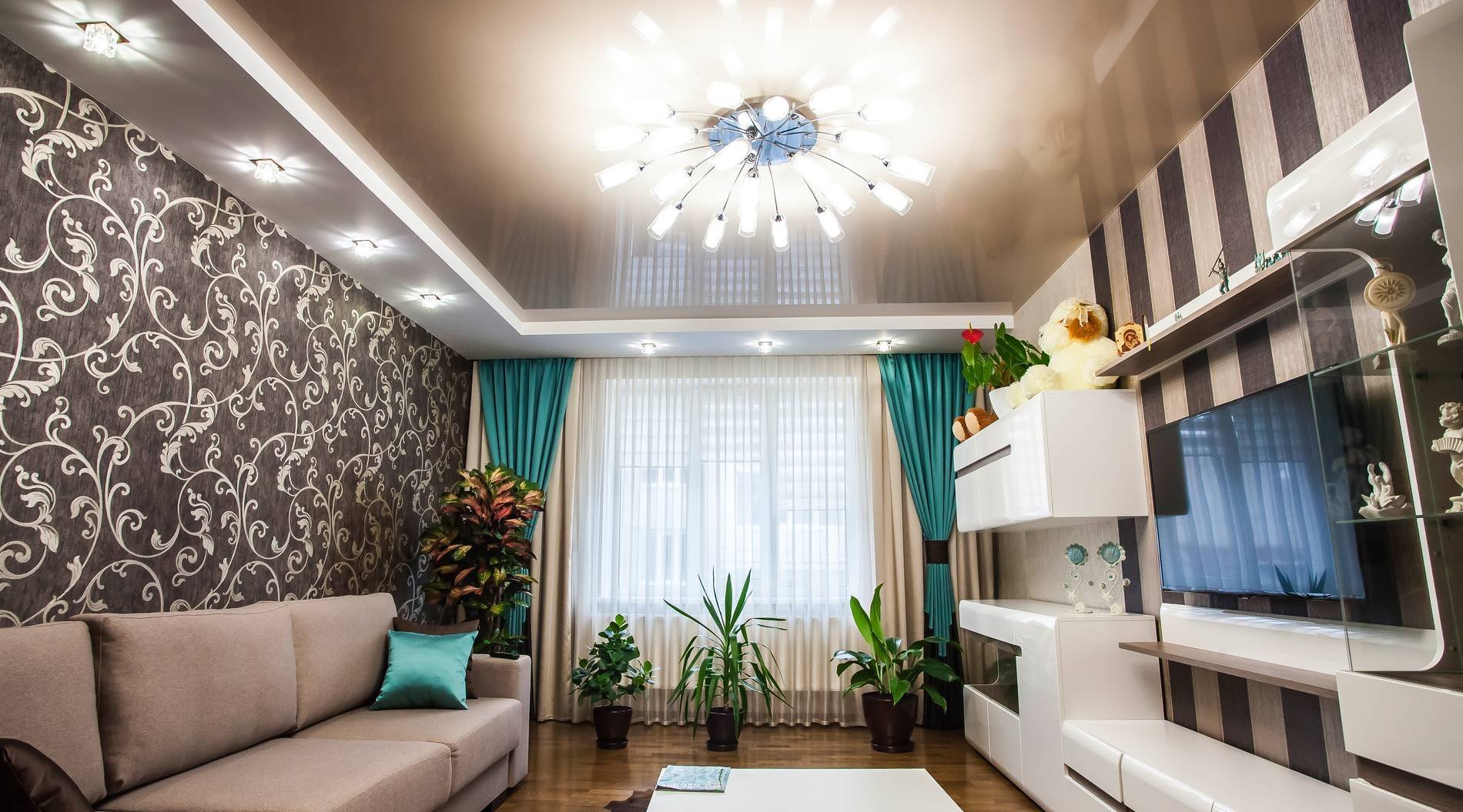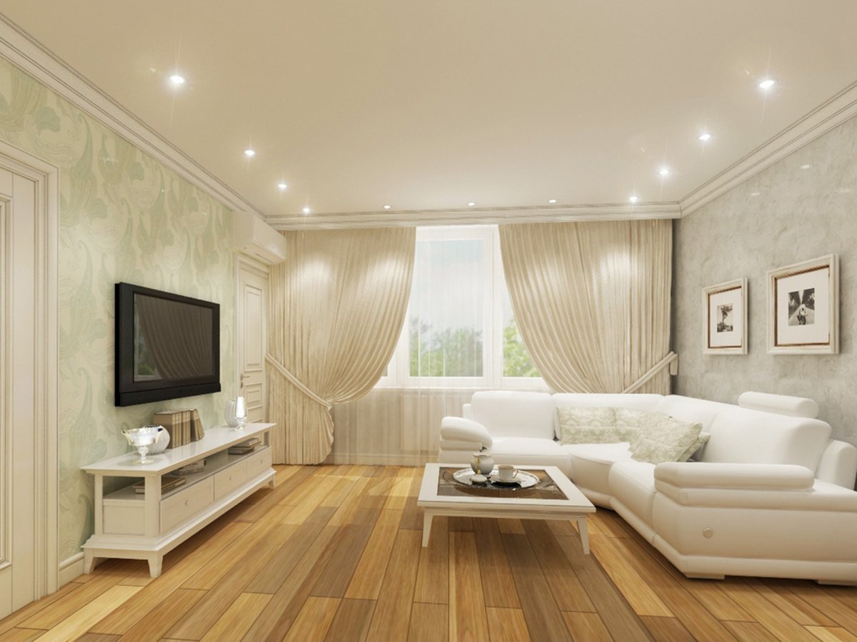 Натяжные потолки для зала в хрущевке