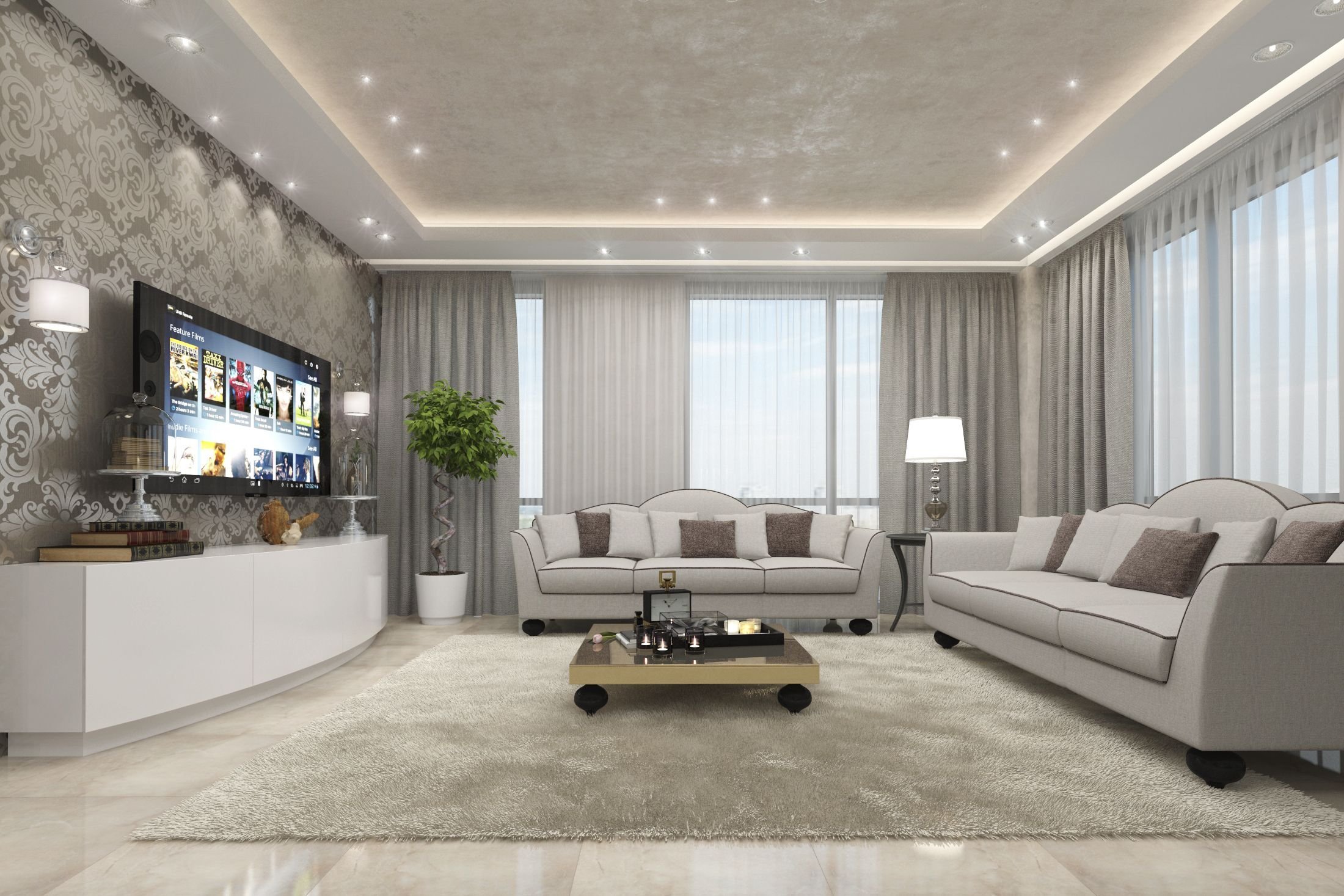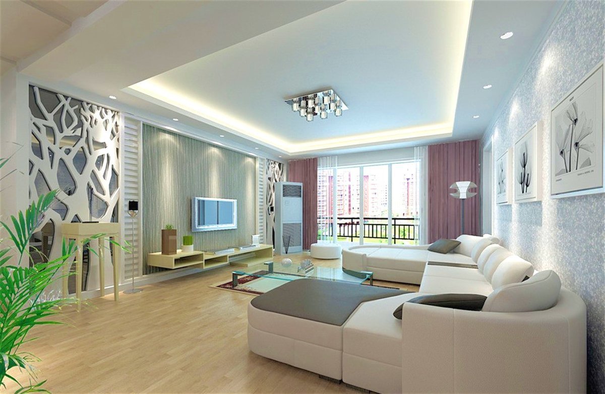 Потолок в гостиной в современном стиле