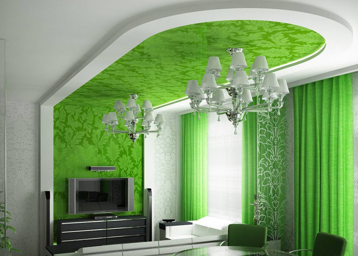 Салатовый натяжной потолок
