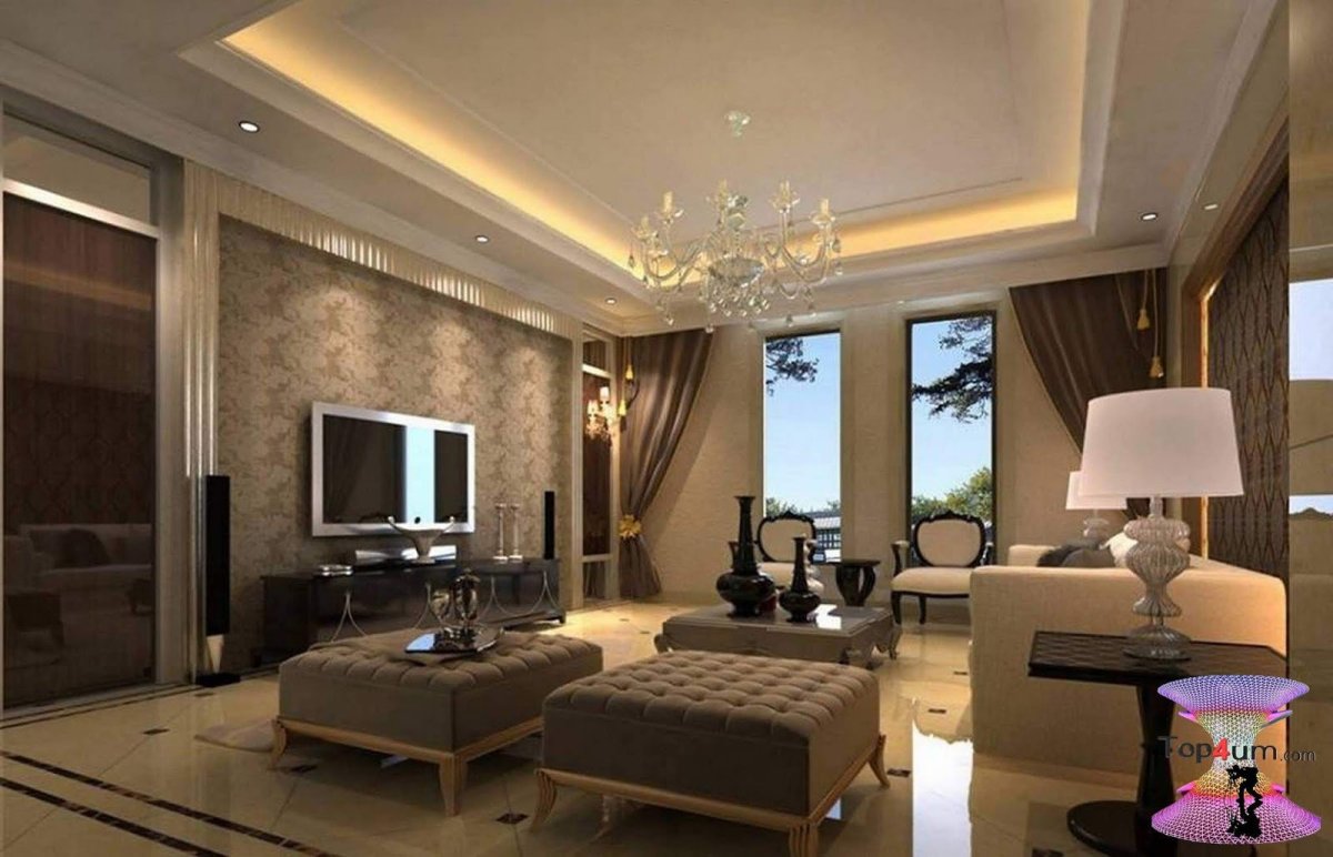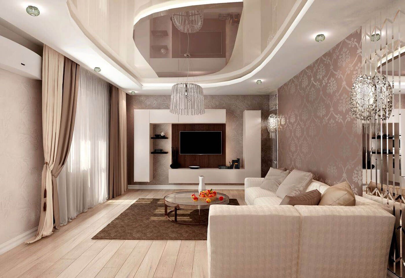 Красивый потолок в гостиной