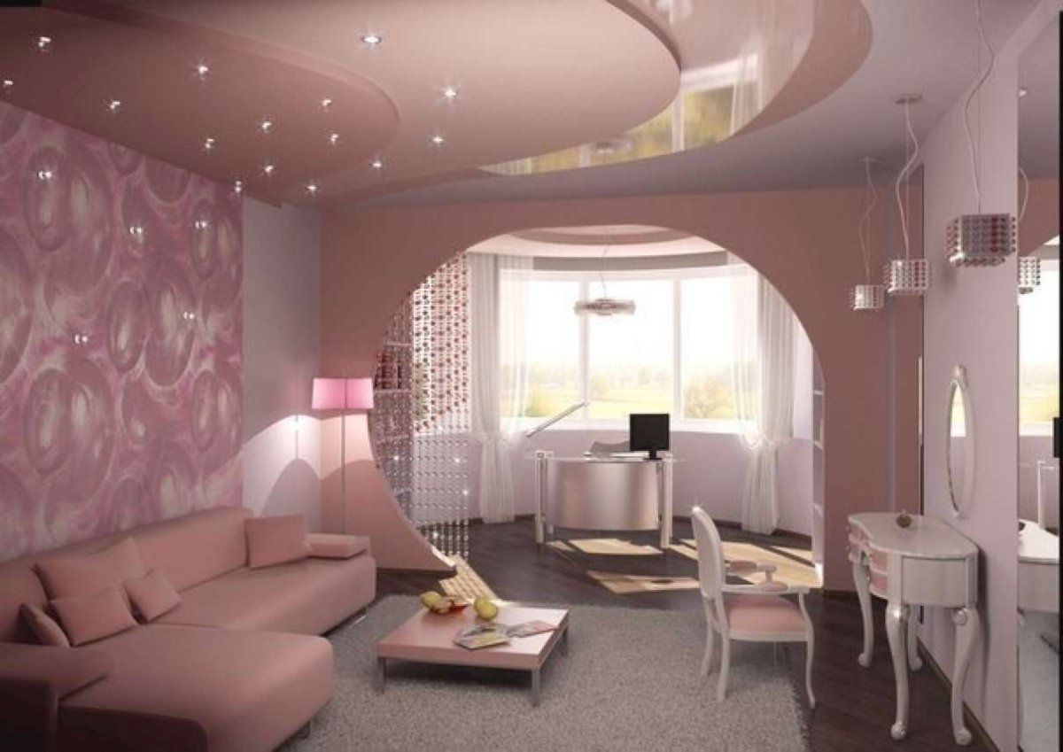 Зал в розовых тонах