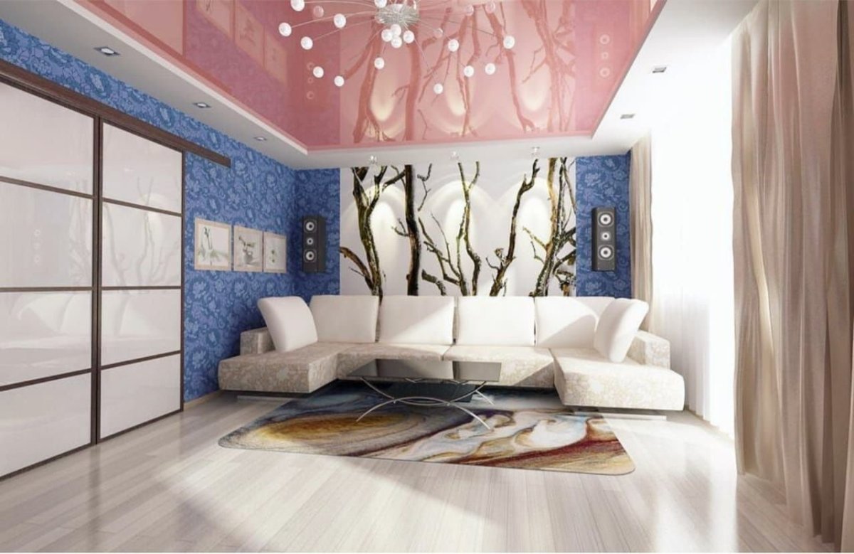 Цветной потолок 2022 в интерьере