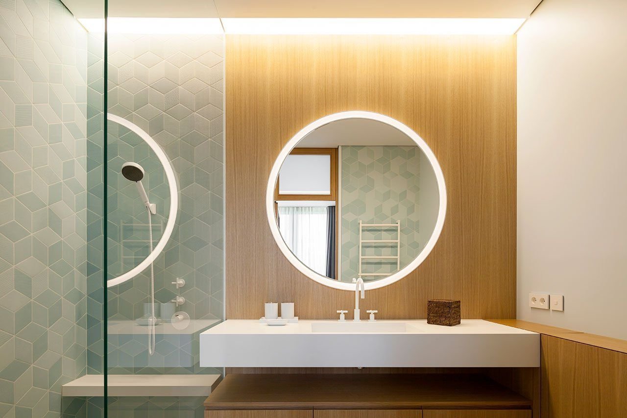 Ванная с круглым зеркалом