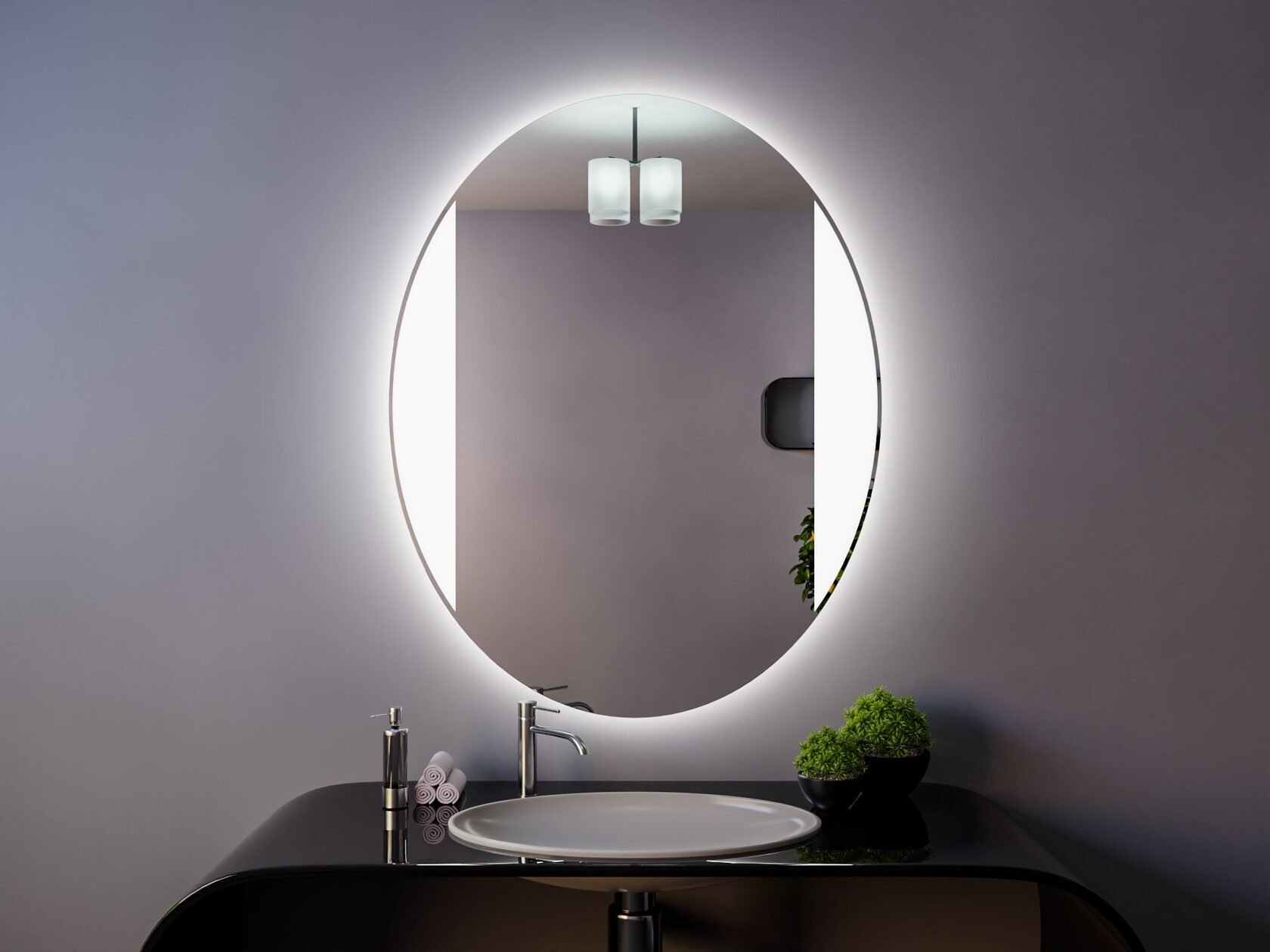 Зеркало с подсветкой теплый свет d60