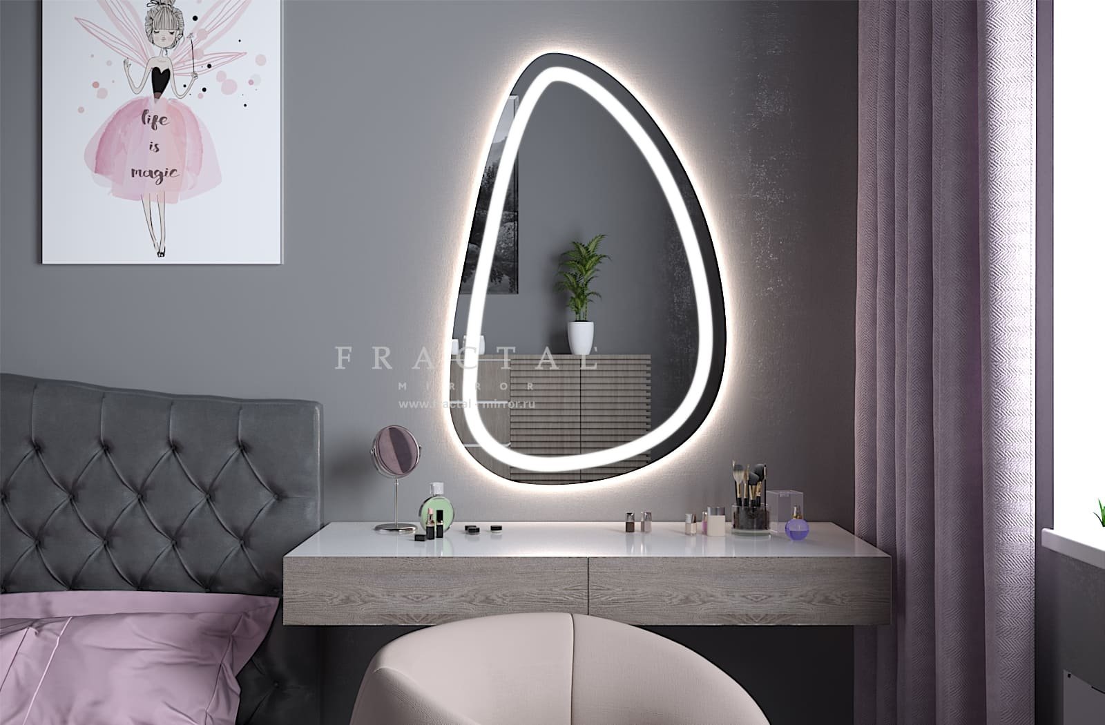 Круглое зеркало с подсветкой в спальню