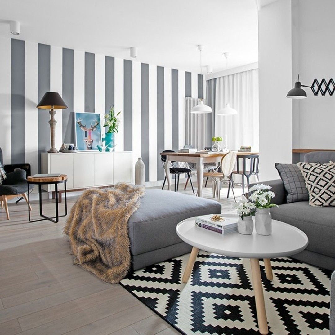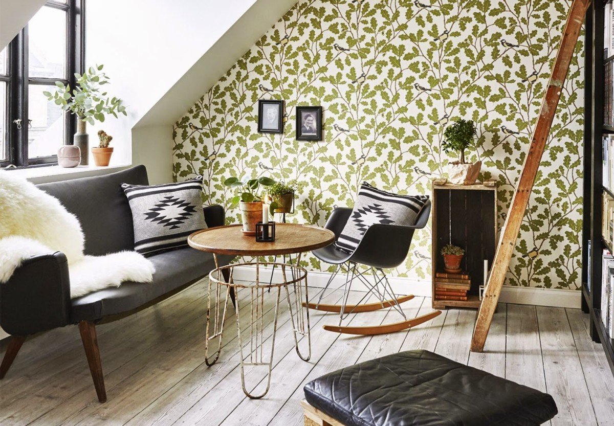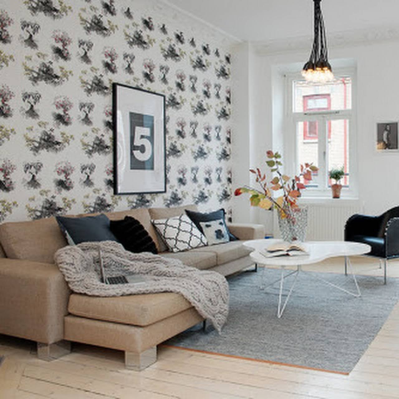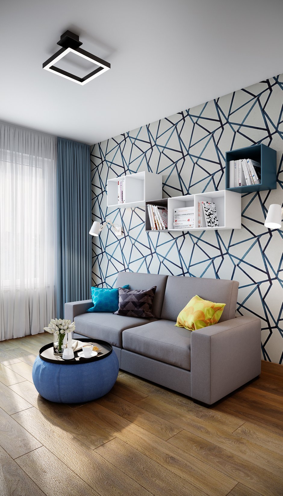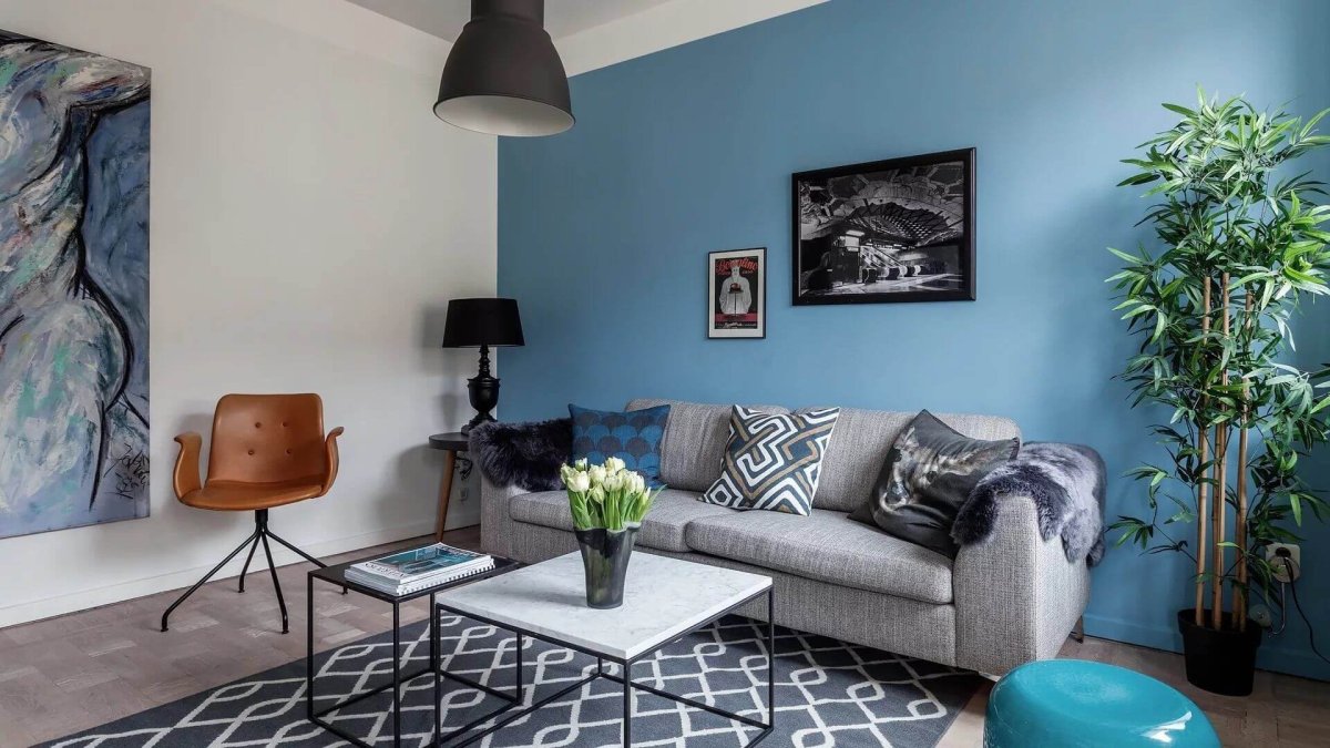 Акцентная стена в интерьере гостиной в скандинавском стиле
