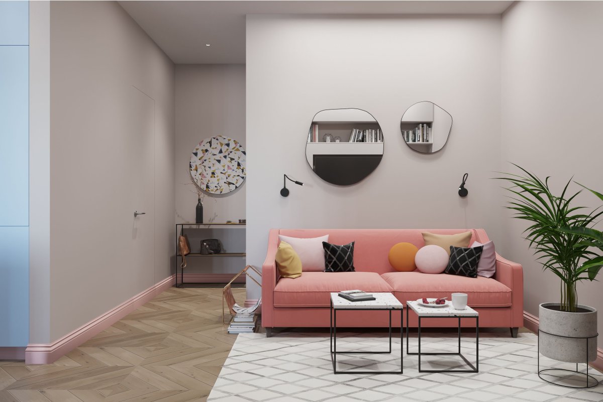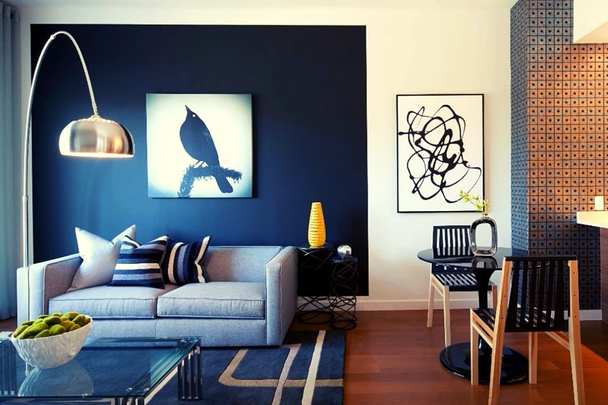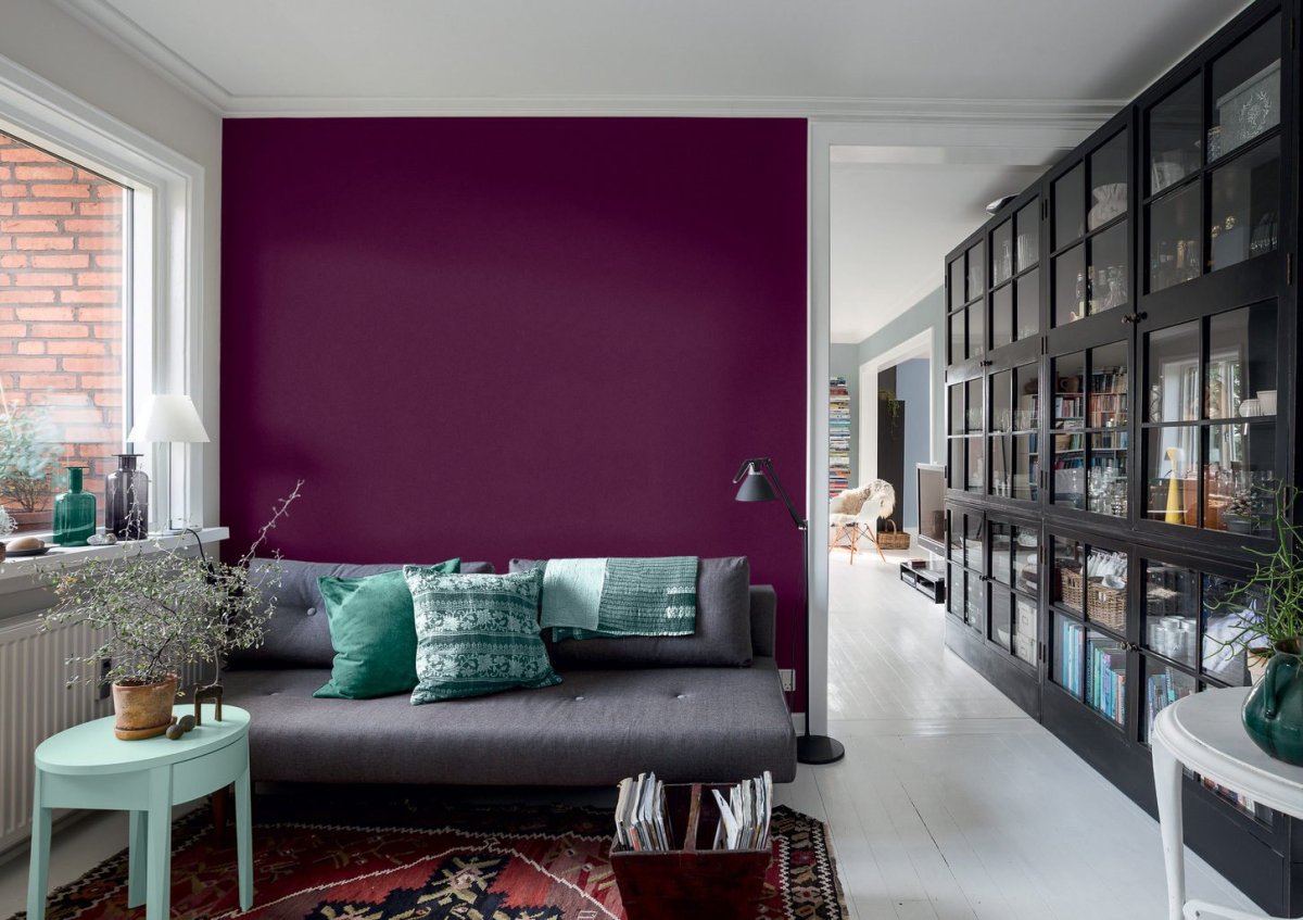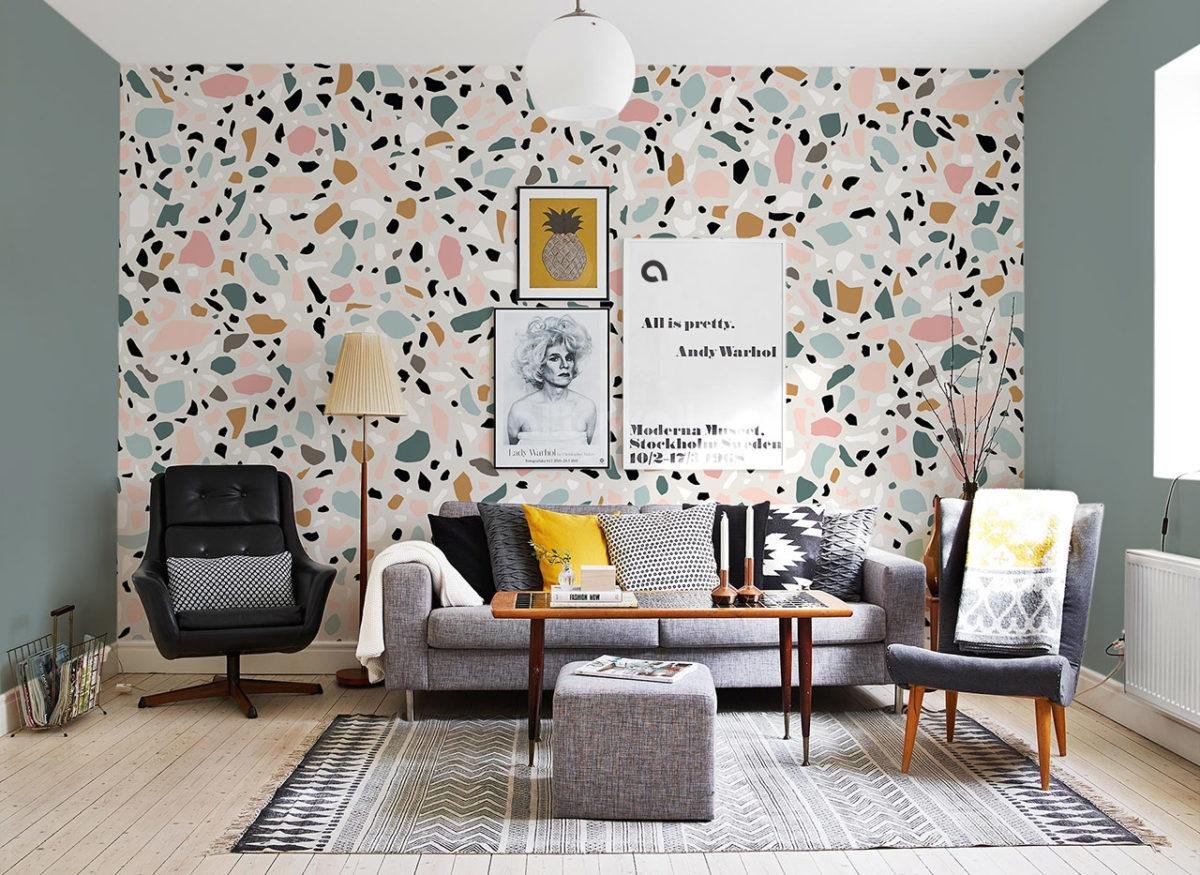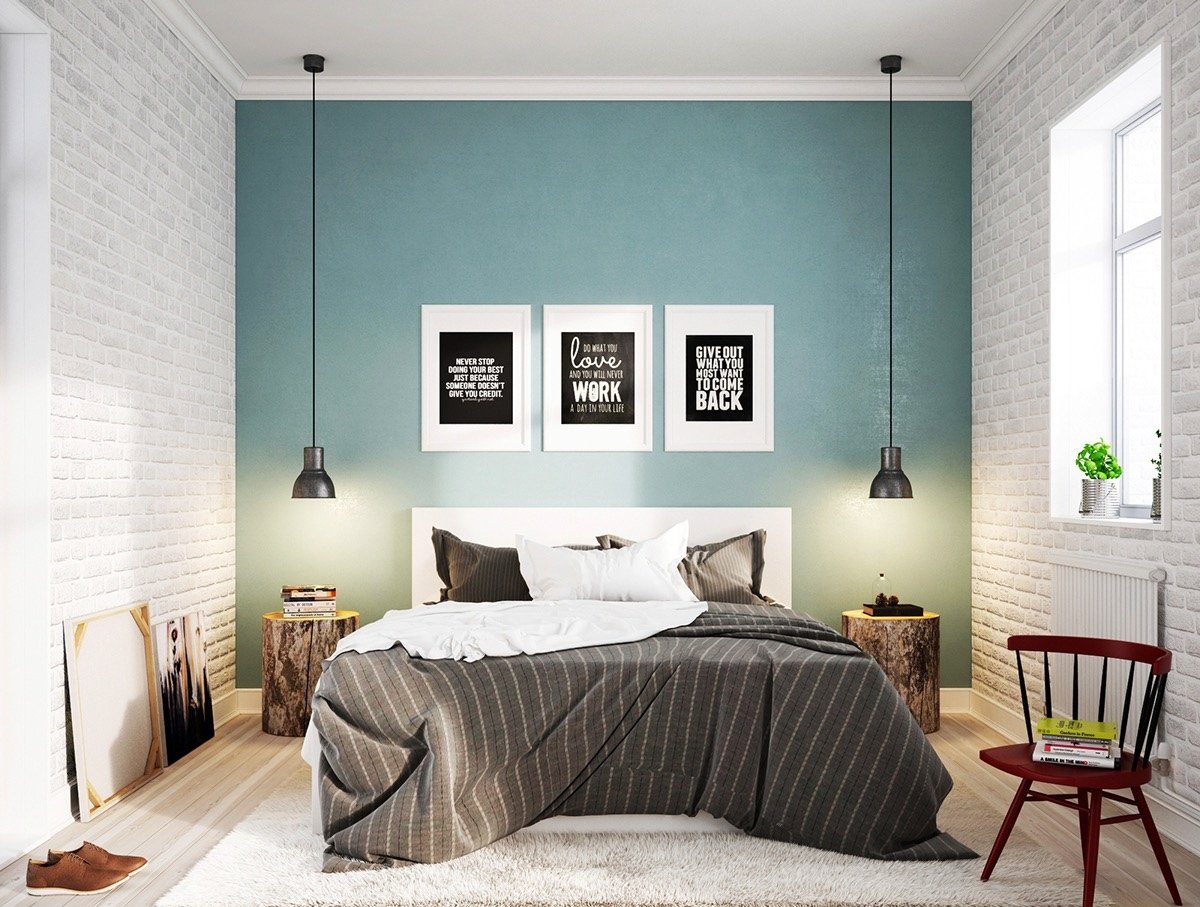 Акцентная стена в интерьере гостиной в скандинавском стиле