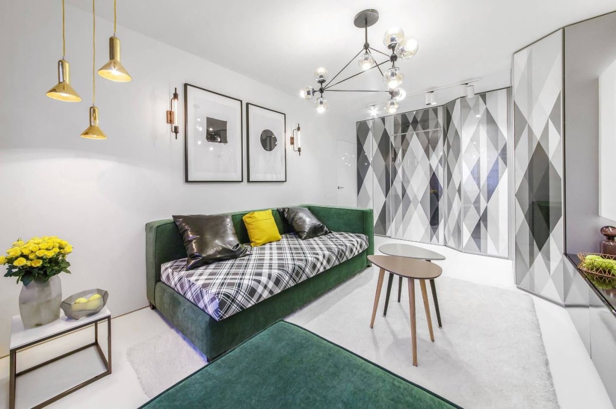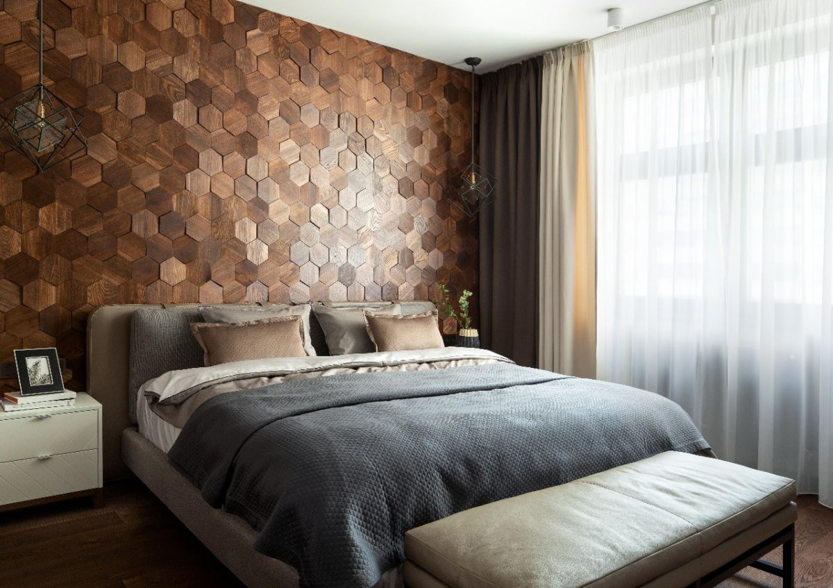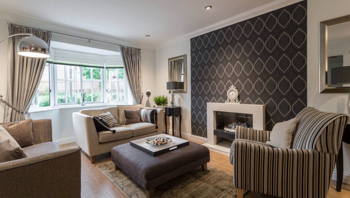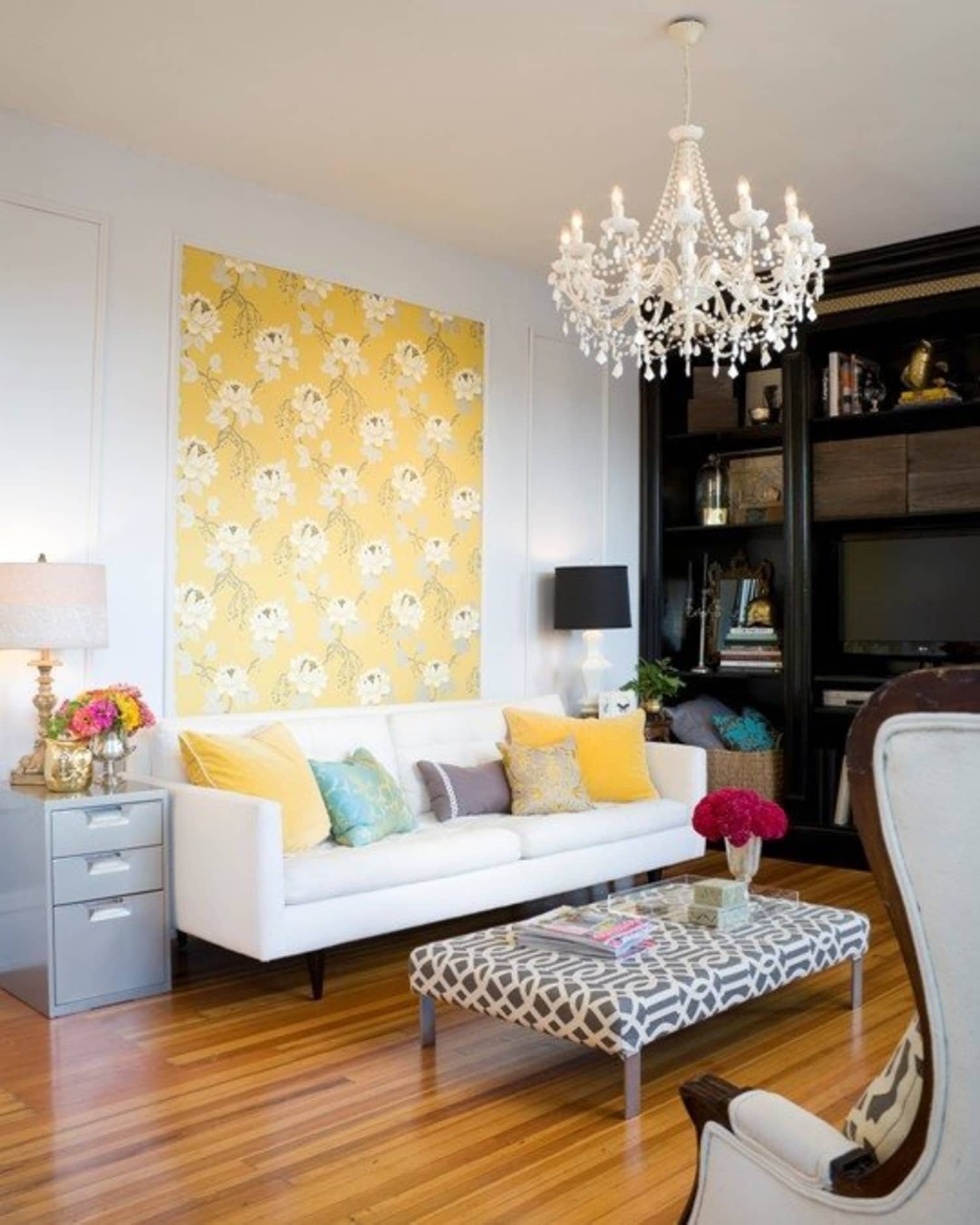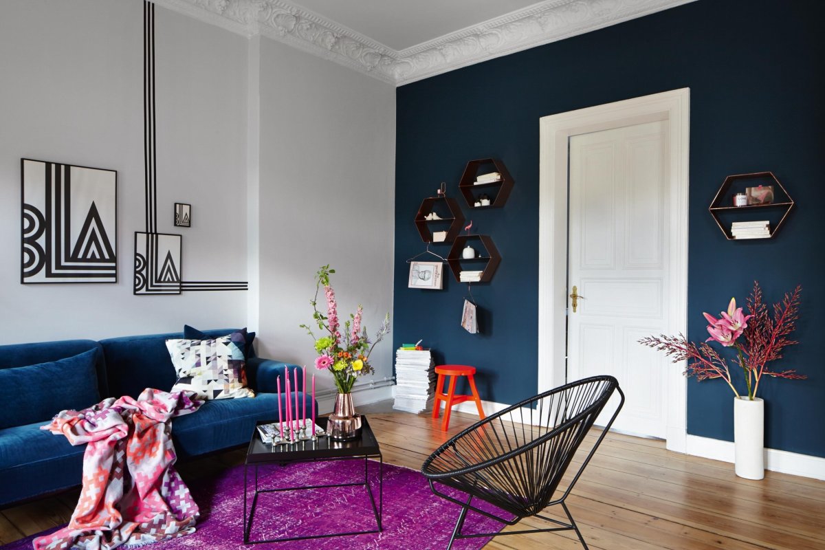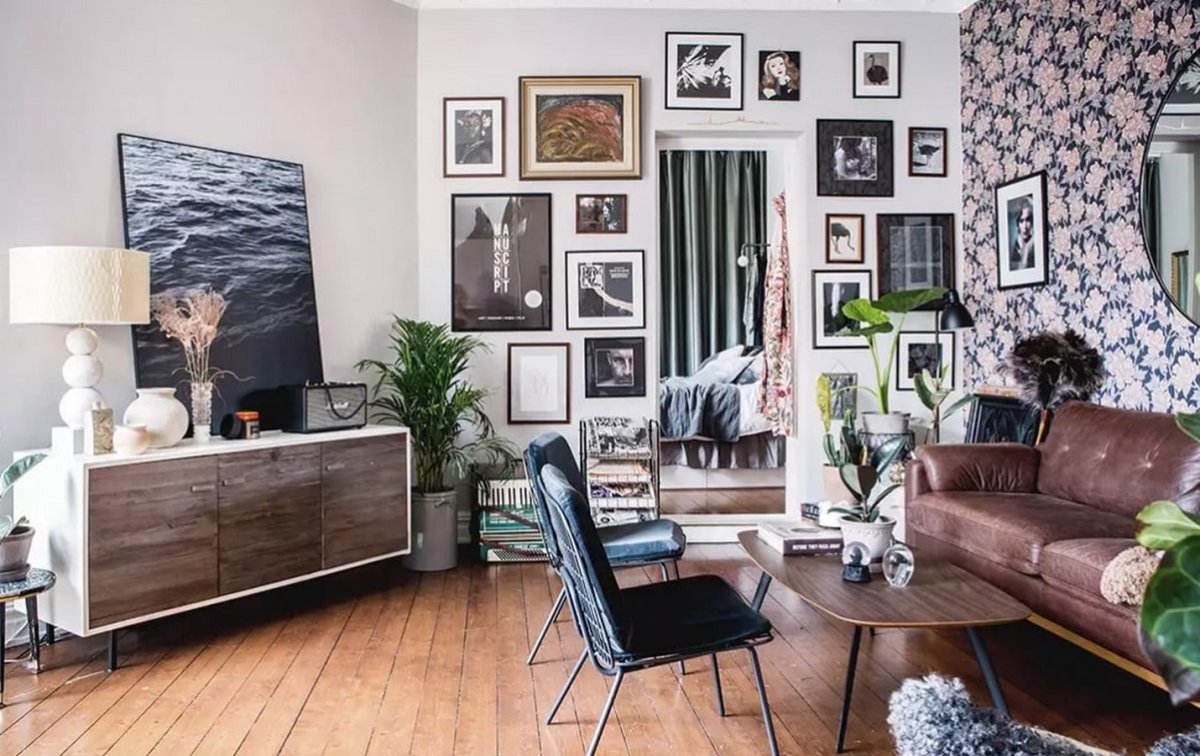 Акцентная стена в интерьере гостиной в скандинавском стиле