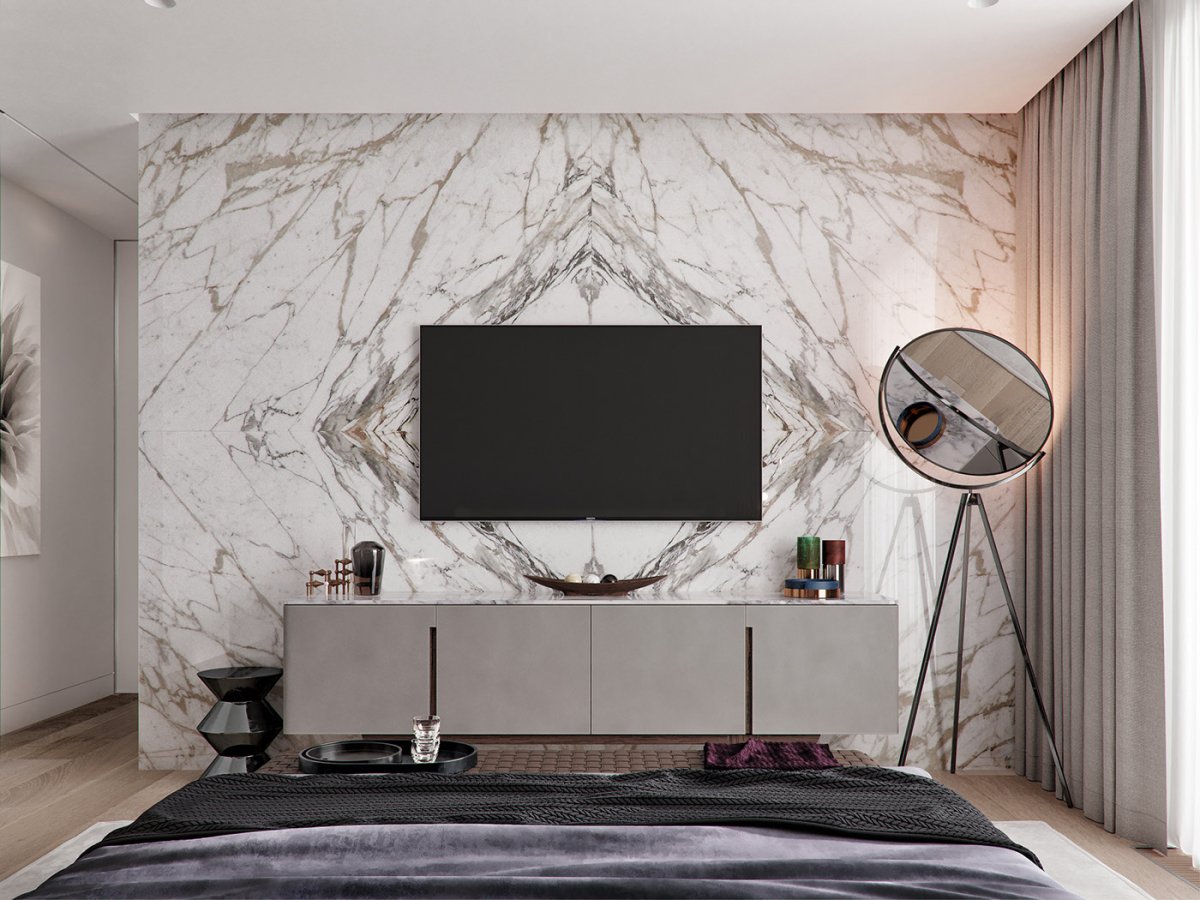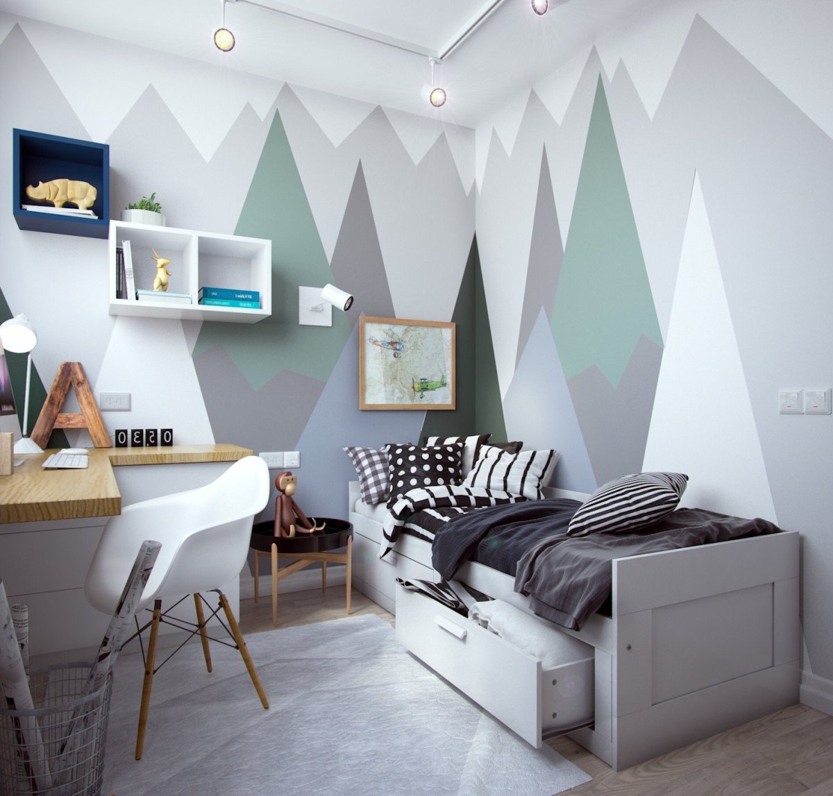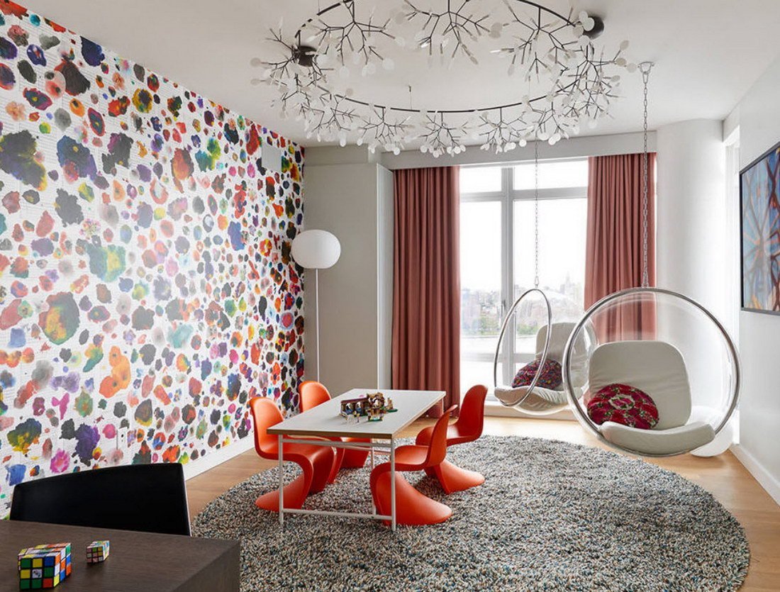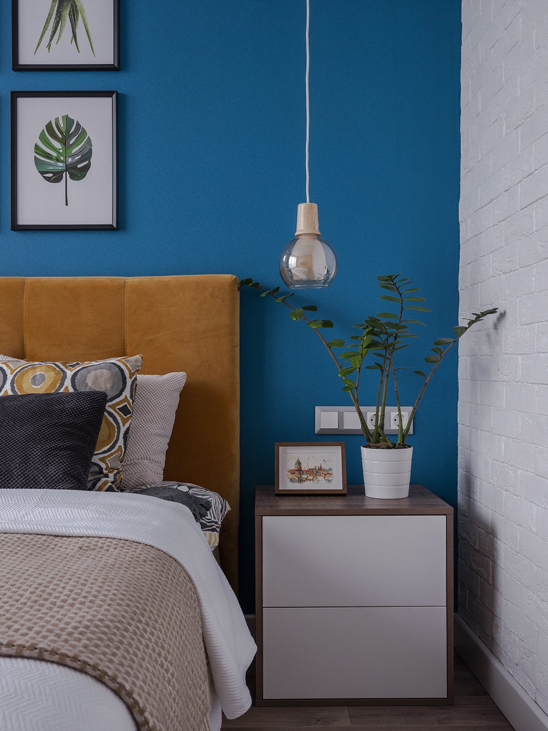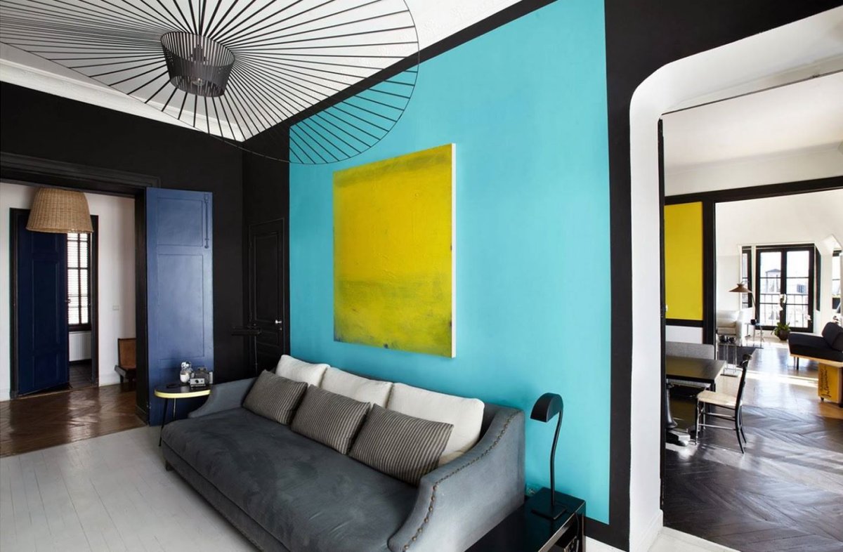 Акцентная стена в интерьере гостиной в скандинавском стиле