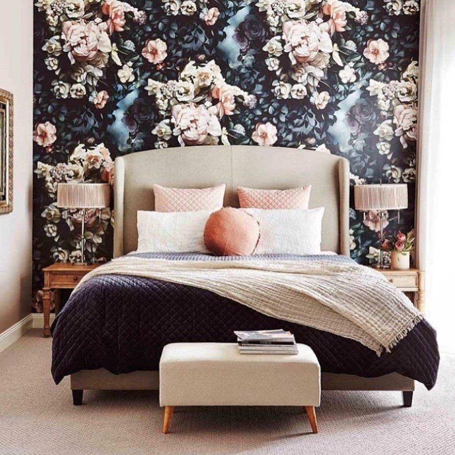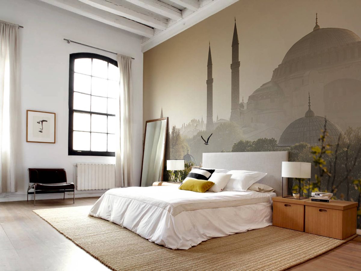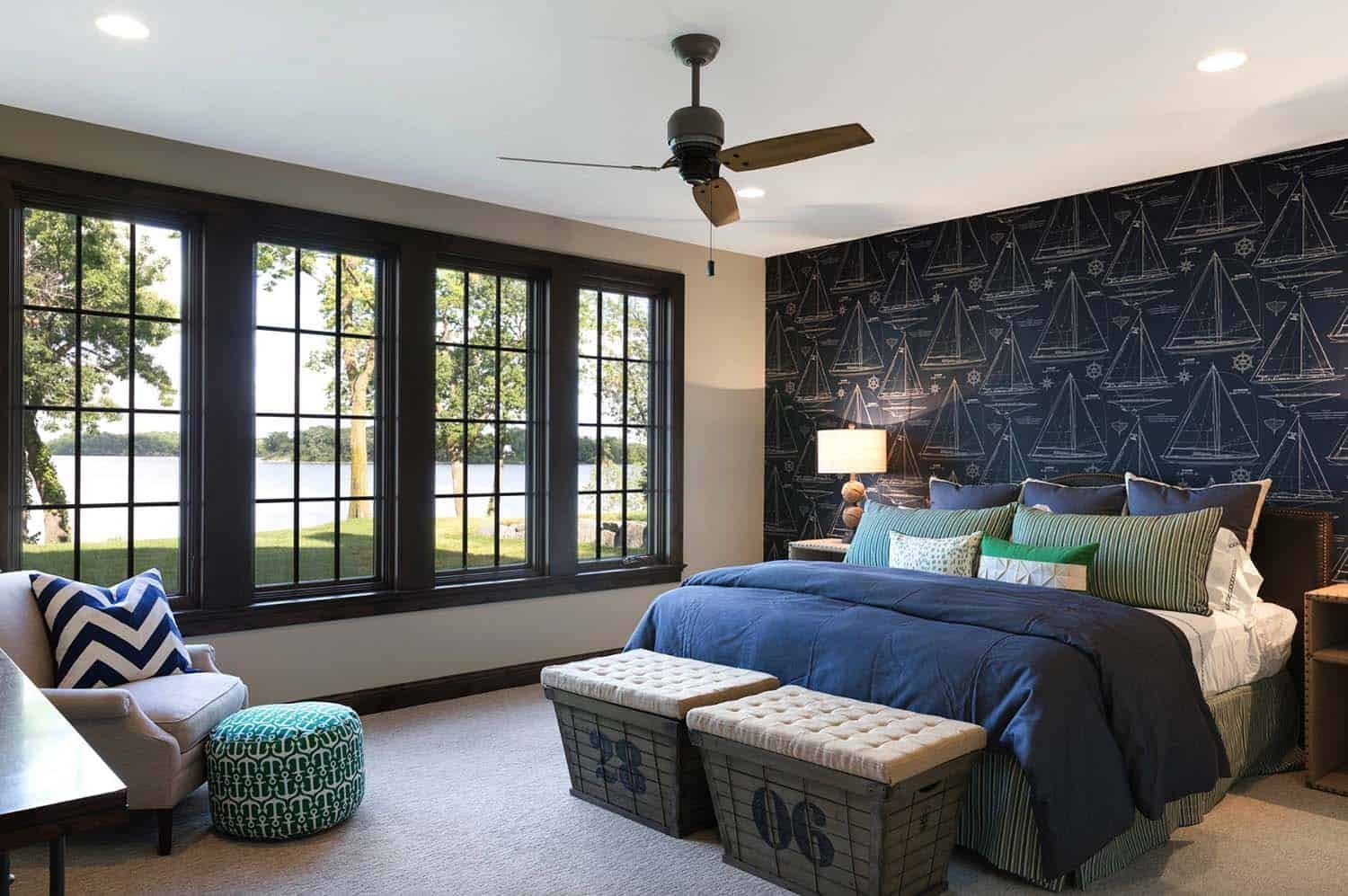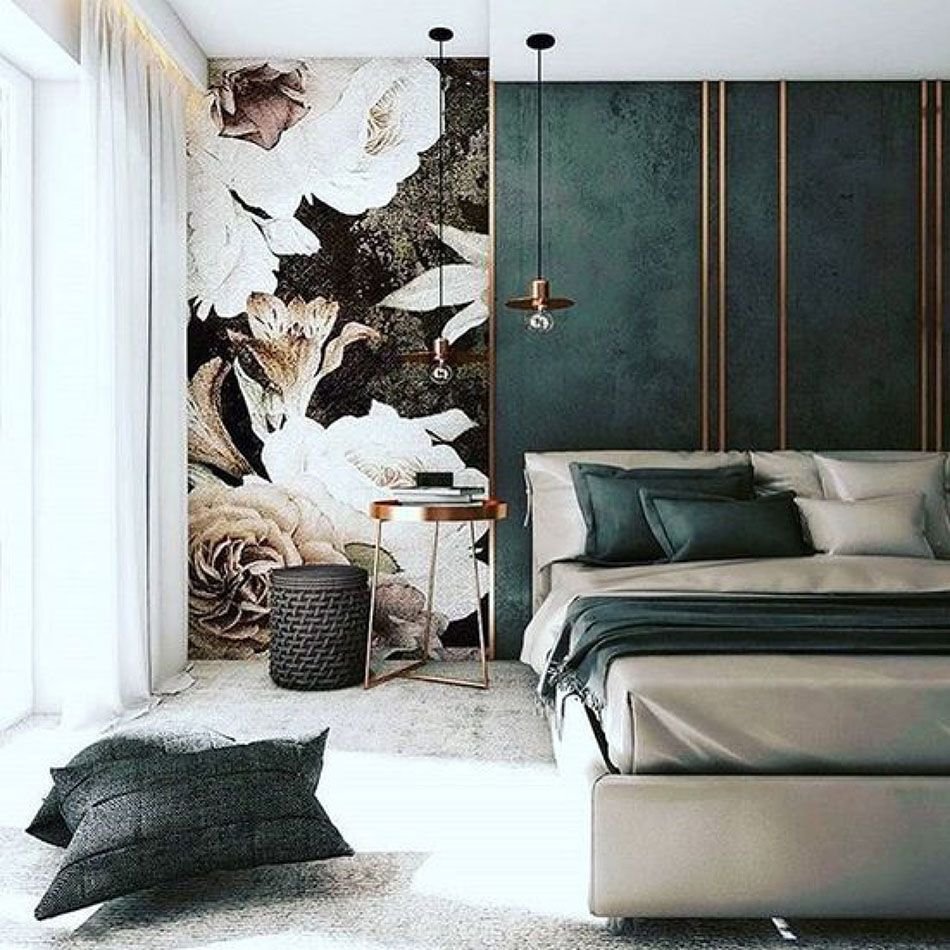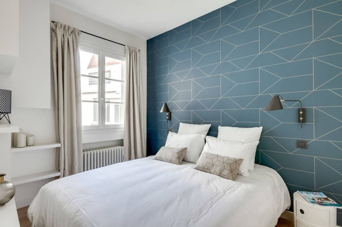 Гостиная с 2 окнами на одной стене с акцентной стеной за диваном