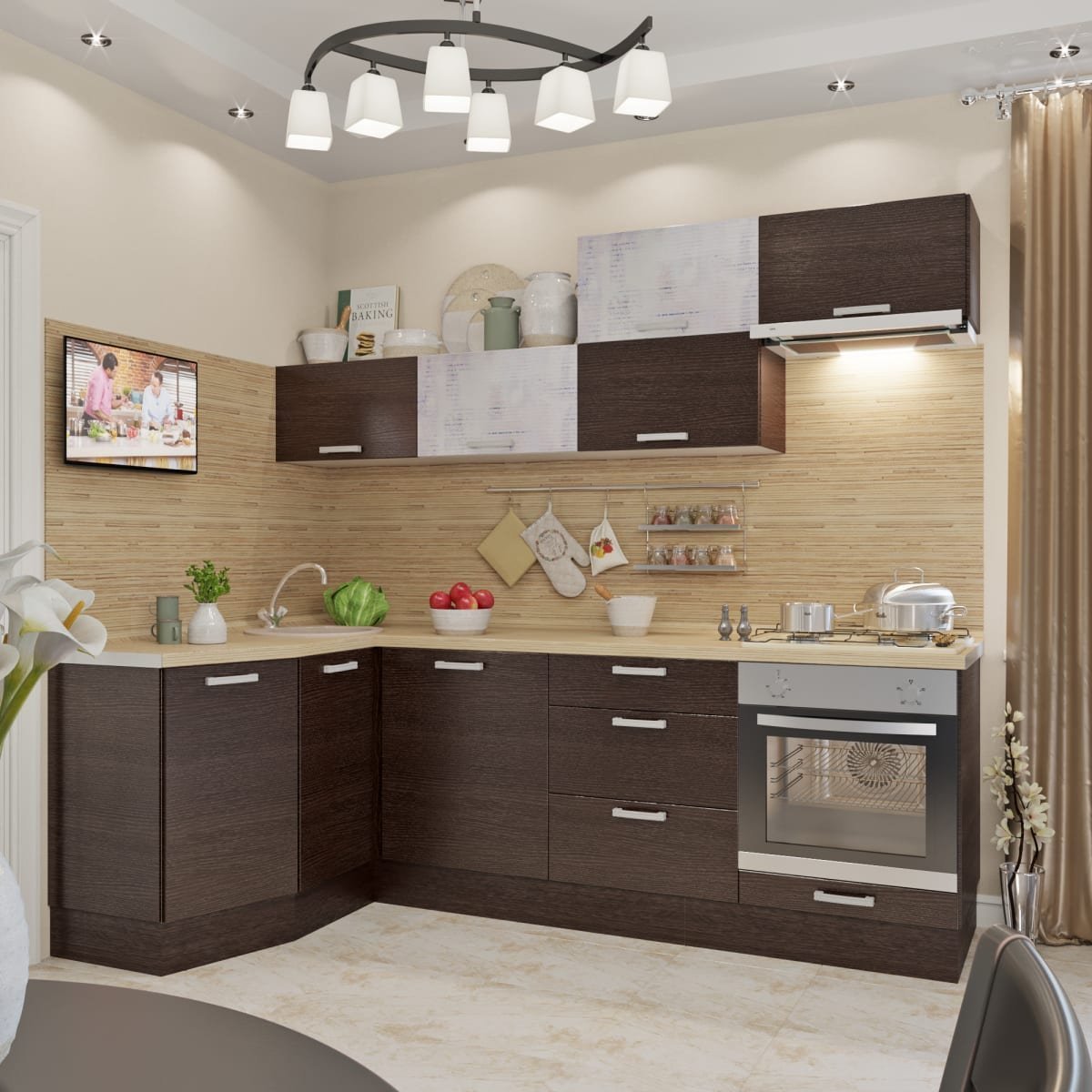 Кухонный гарнитур коричневый
