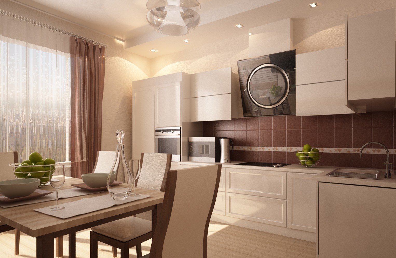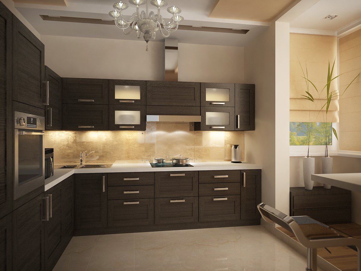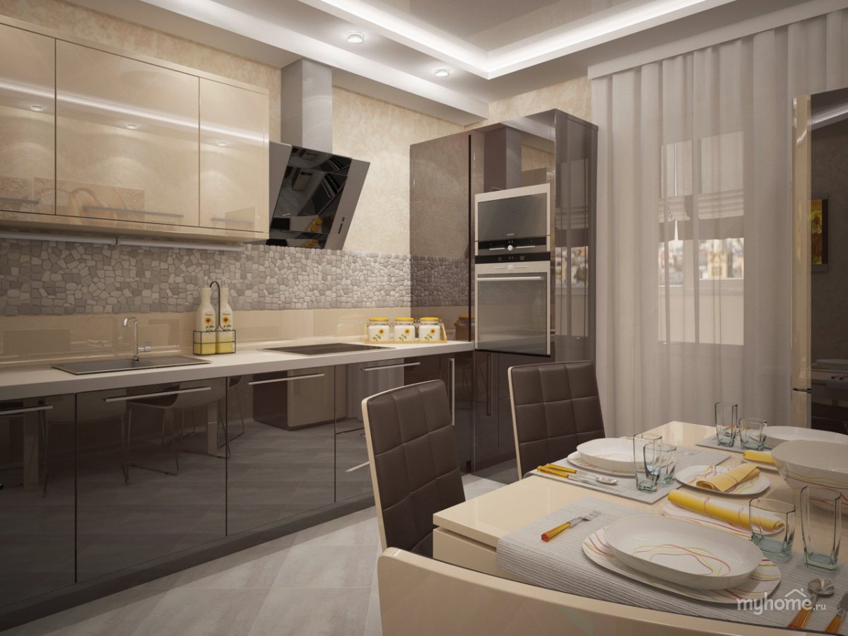 Дизайн кухни в бежево коричневых тонах
