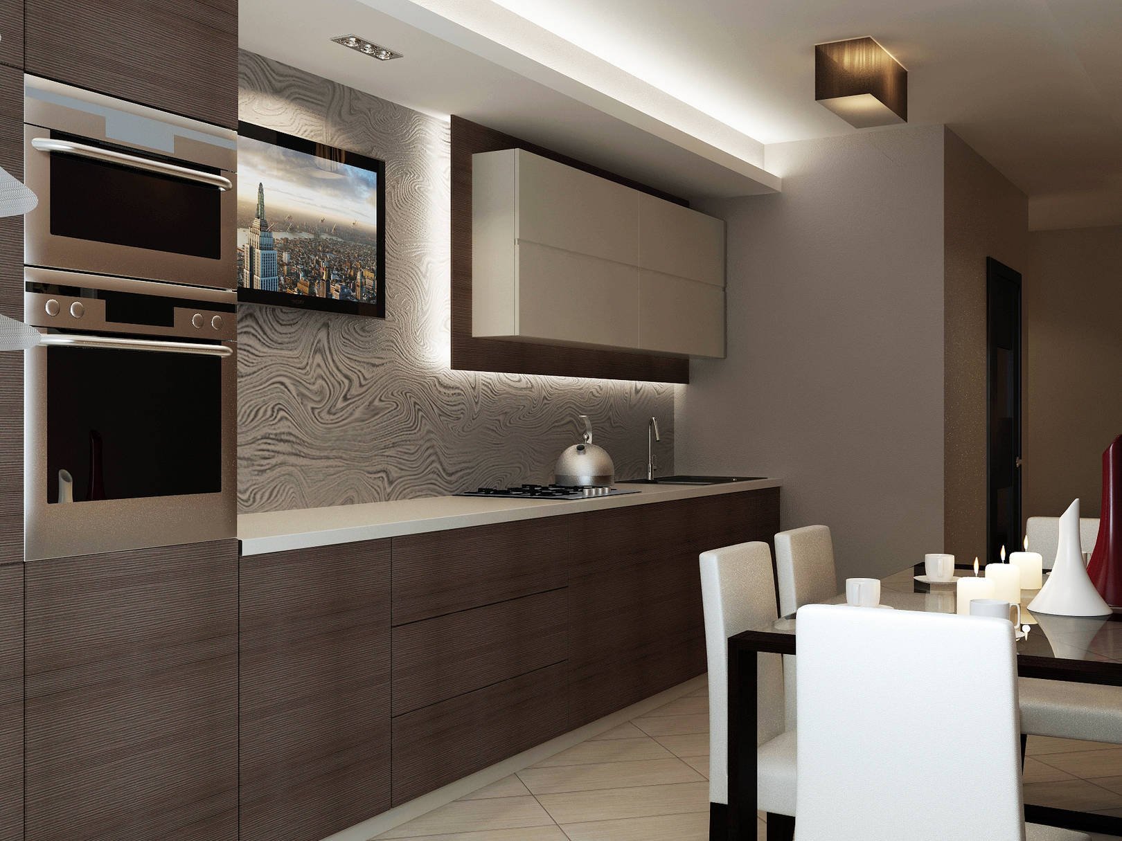 Отделка кухни в коричневых тонах