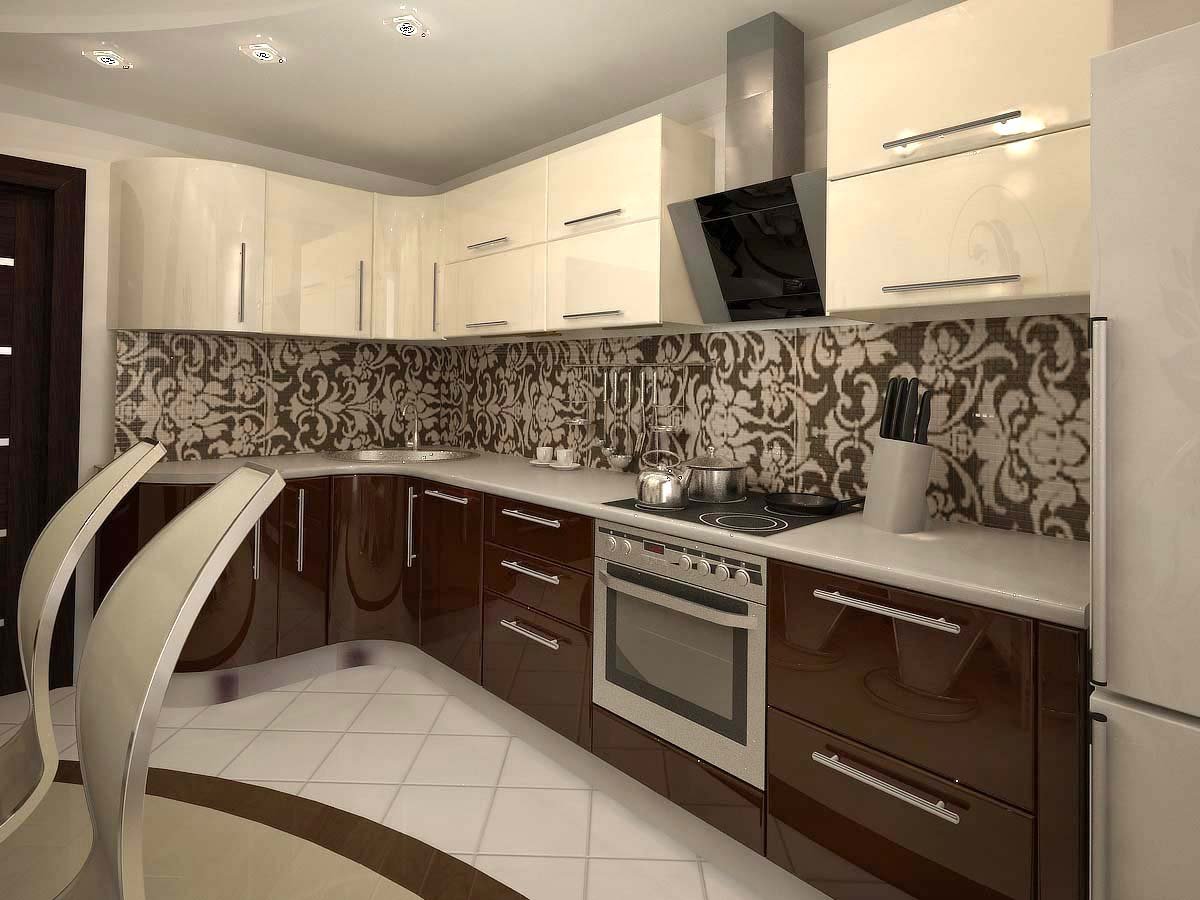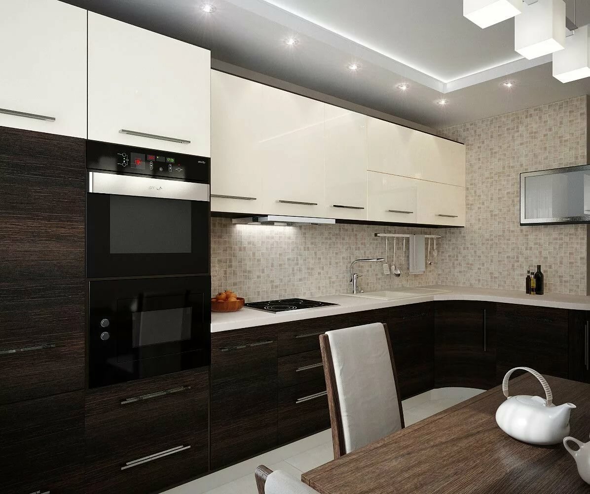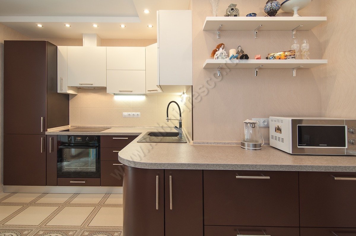 Бело коричневая кухня в интерьере