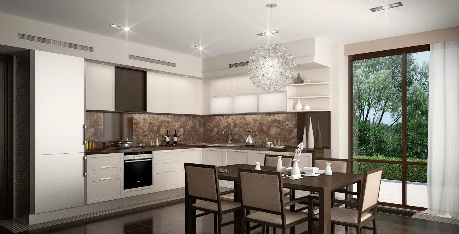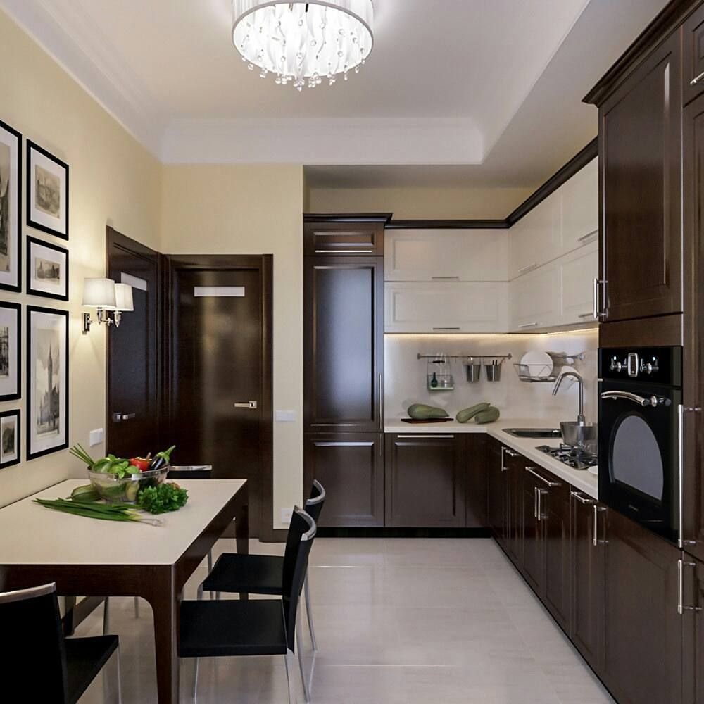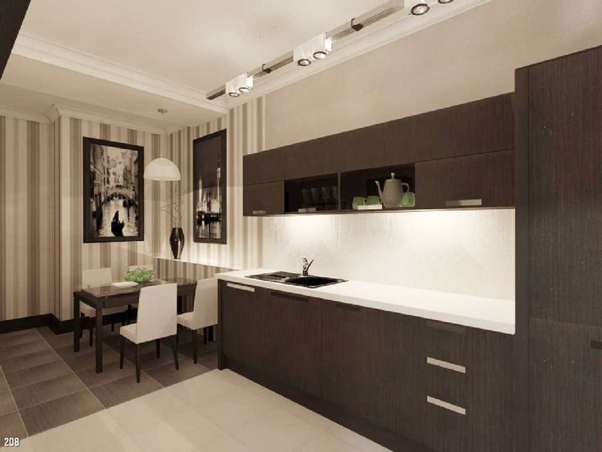 Бело коричневая кухня в интерьере