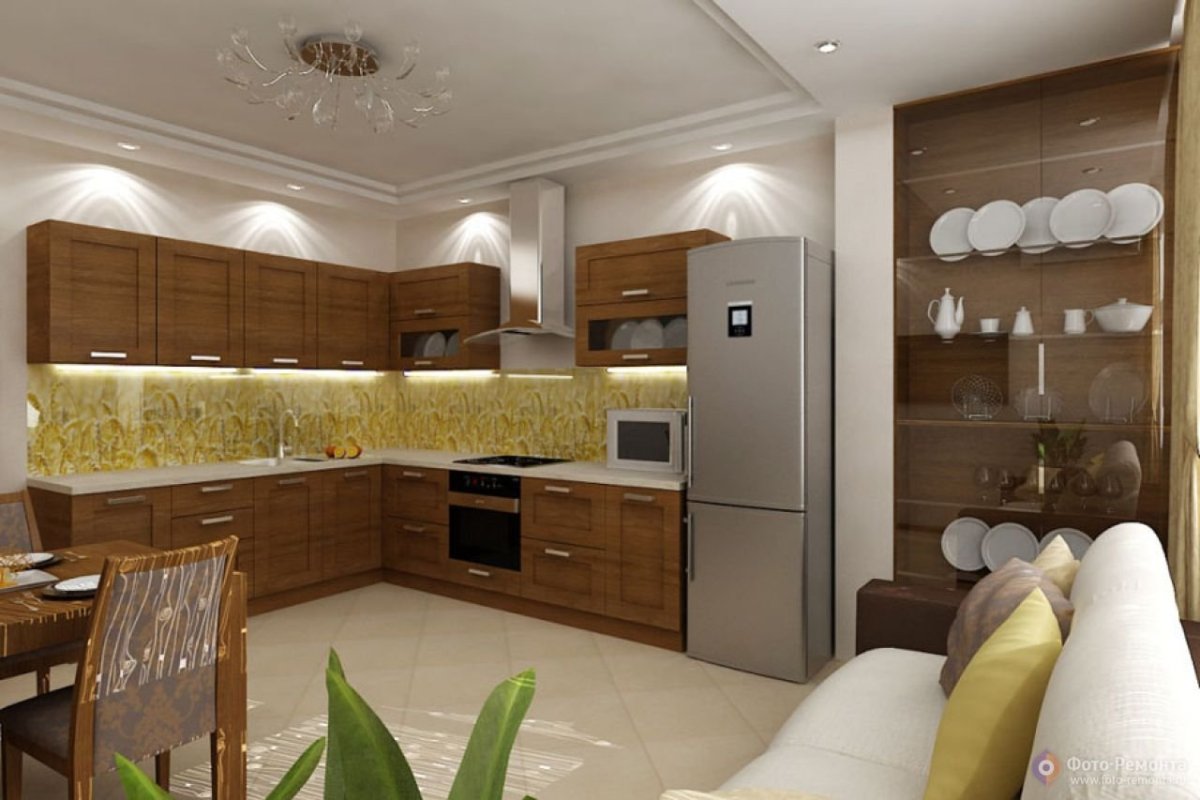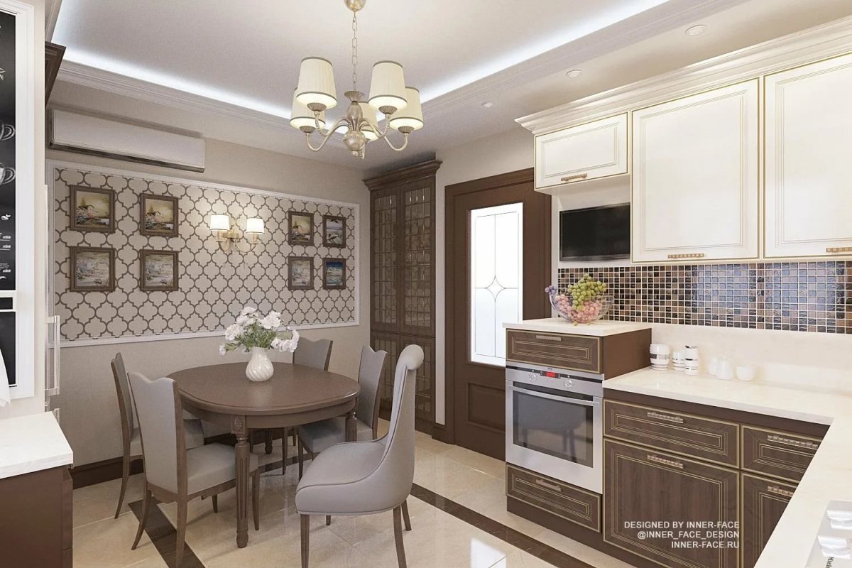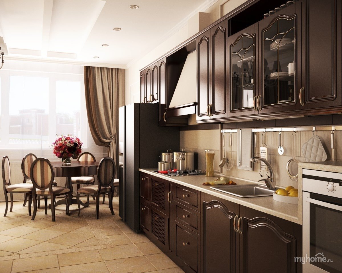 Кухня гостиная классика коричневый цвет