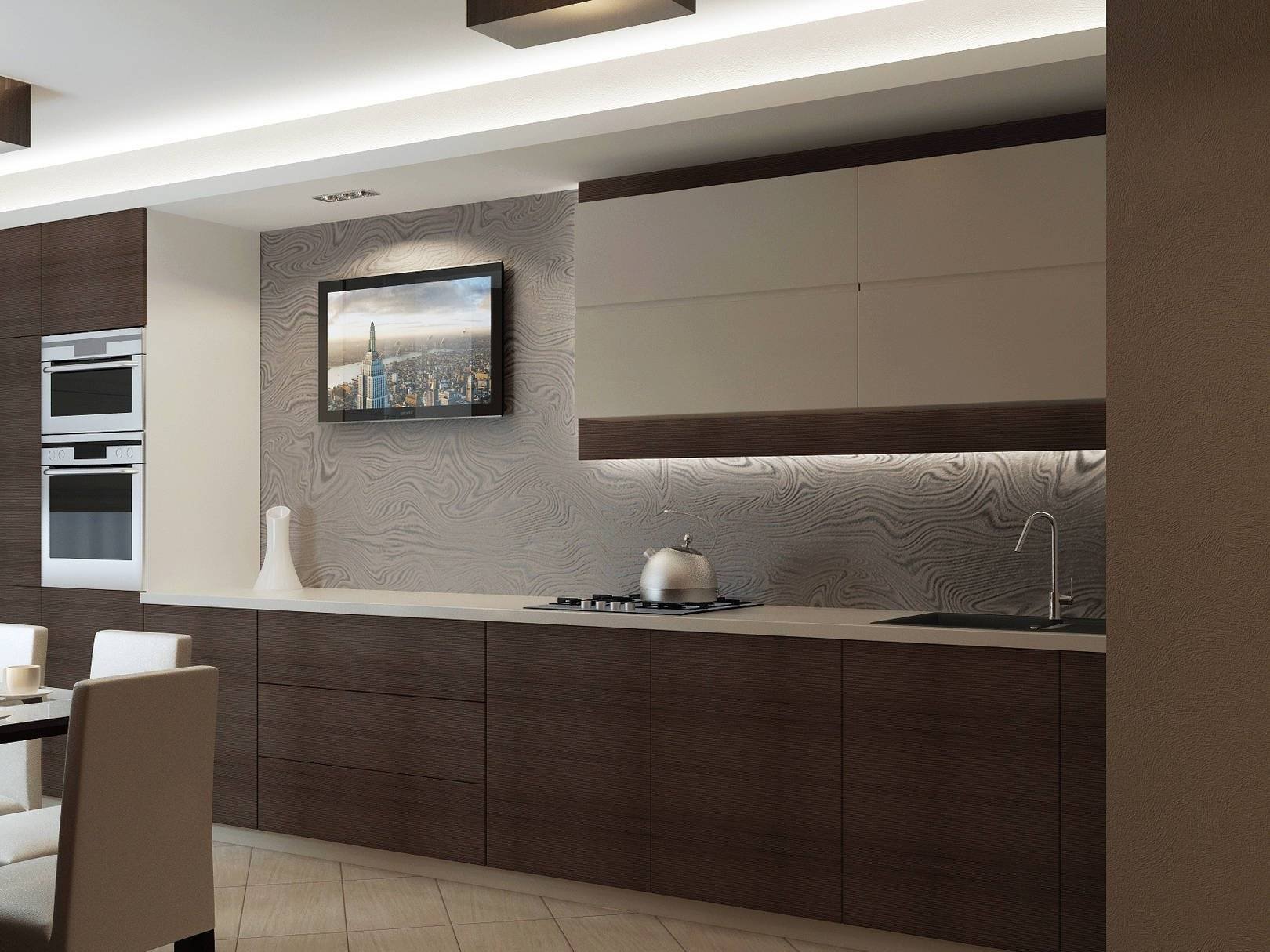 Дизайн кухни в коричнево-бежевых тонах