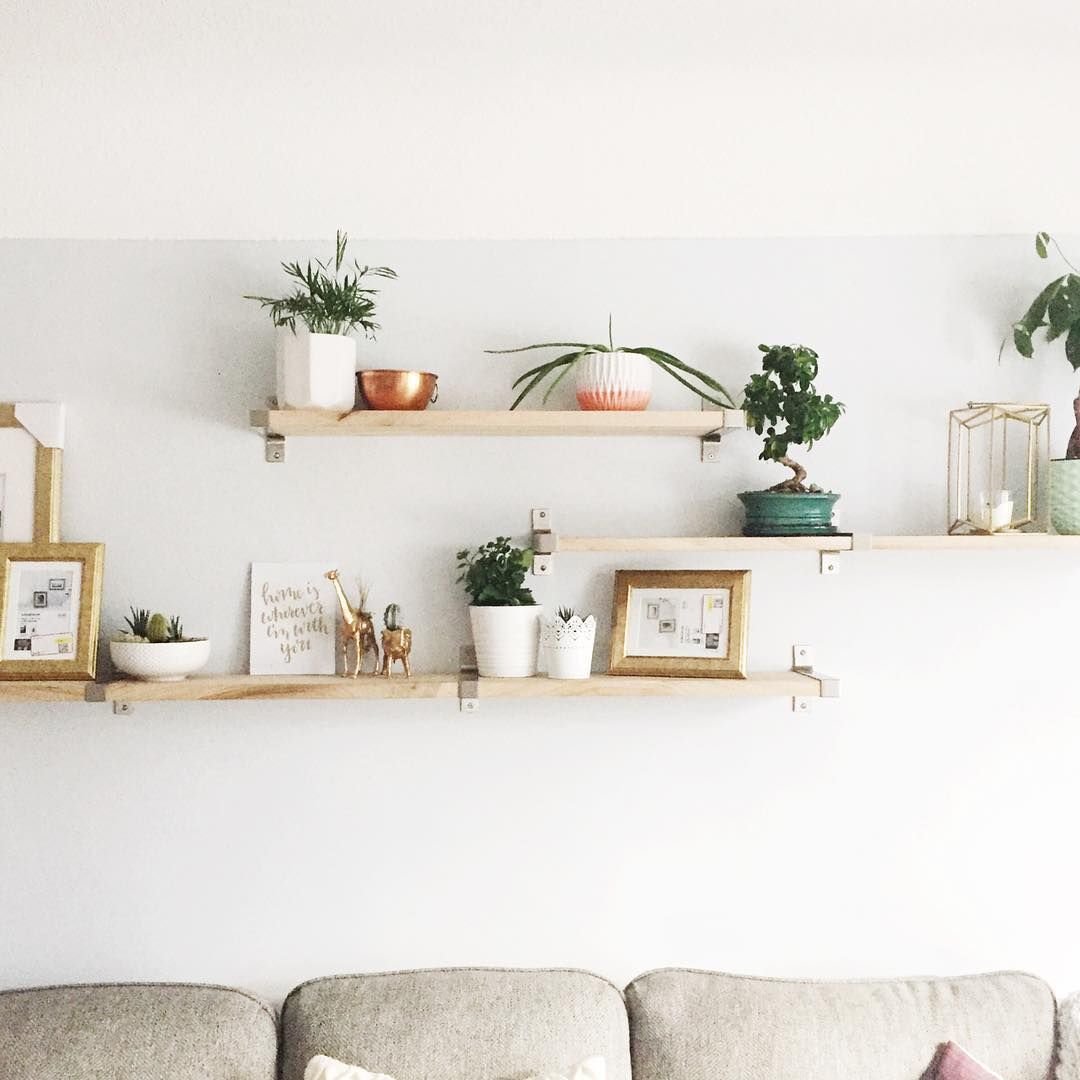 Настенные полки для цветов в интерьере