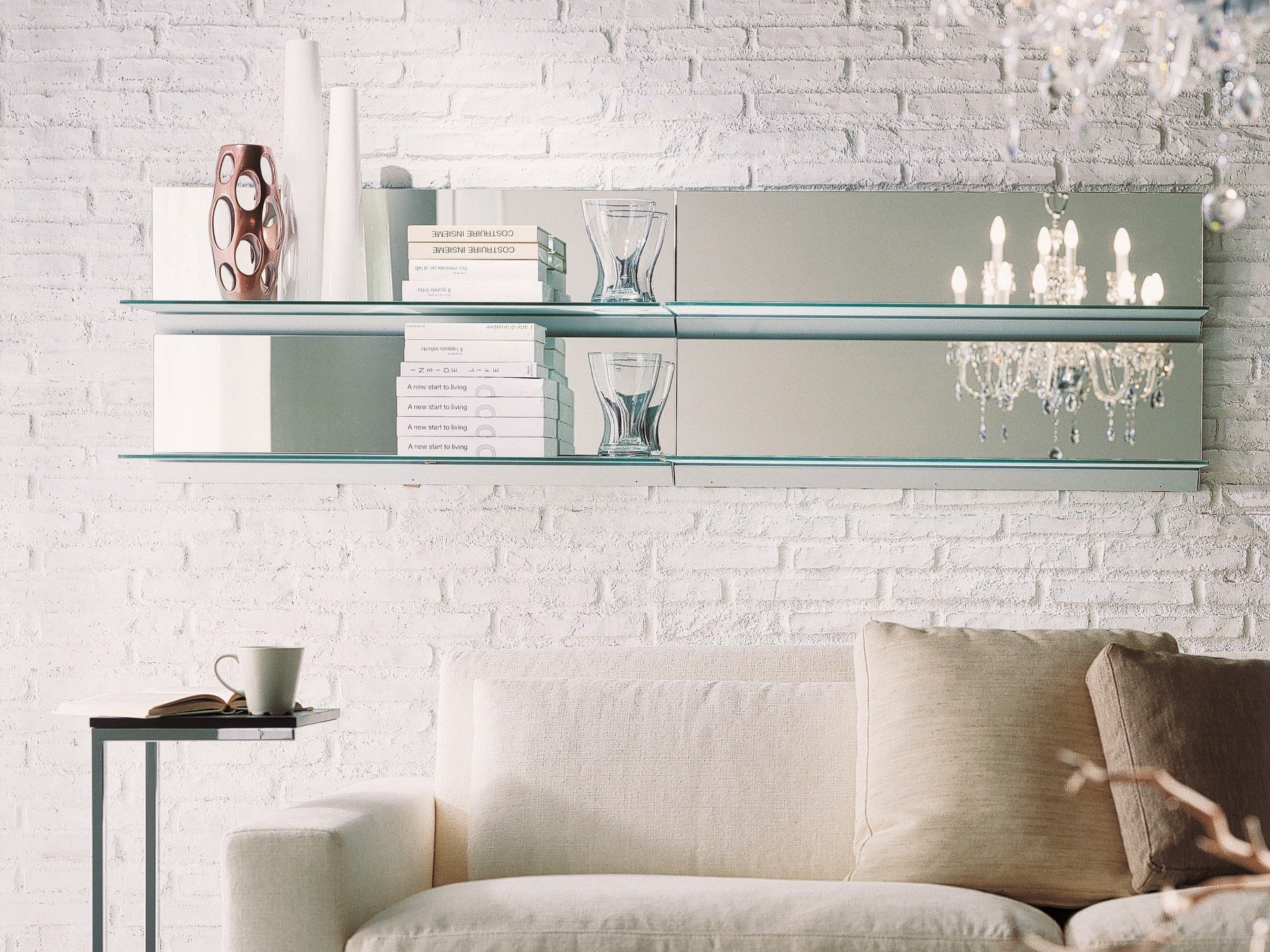 Зеркальная полка в гостиную
