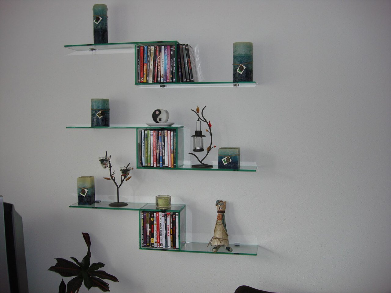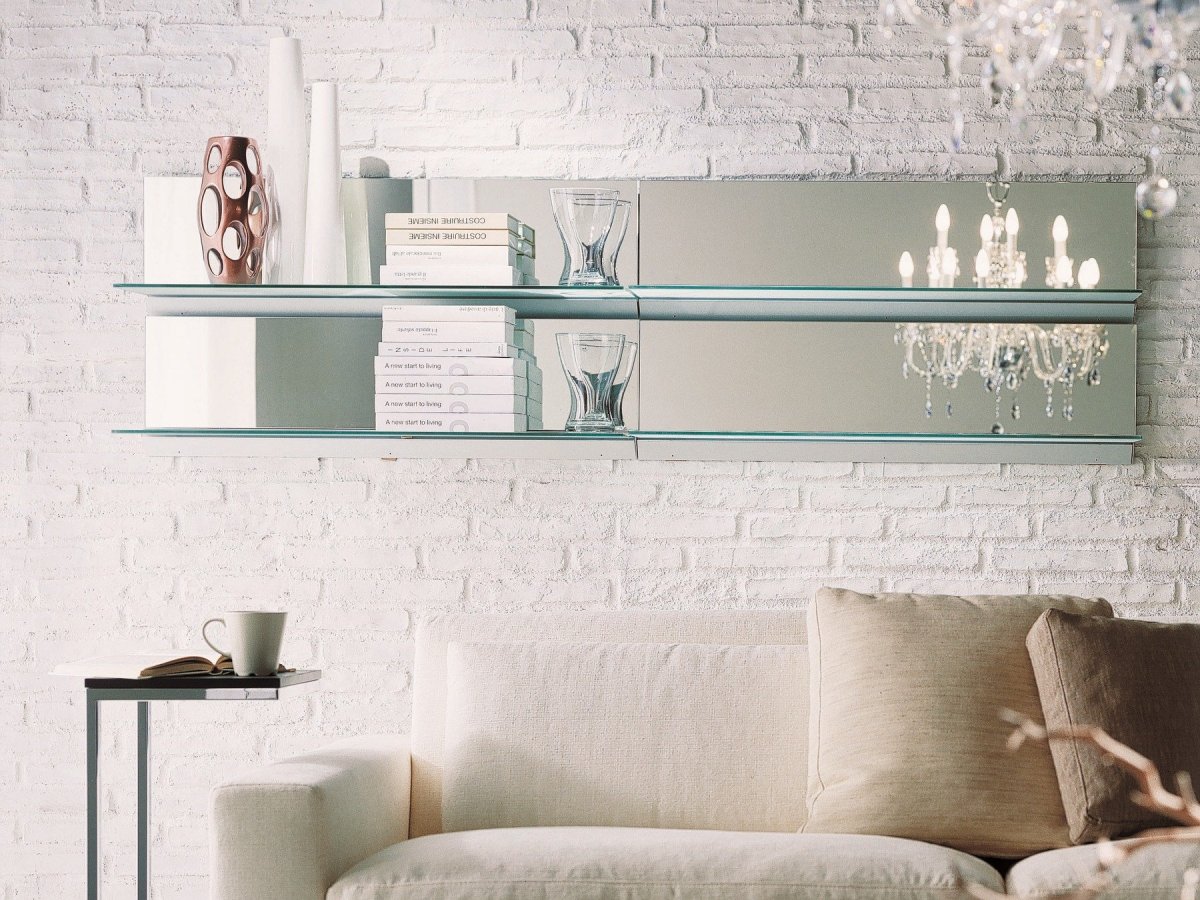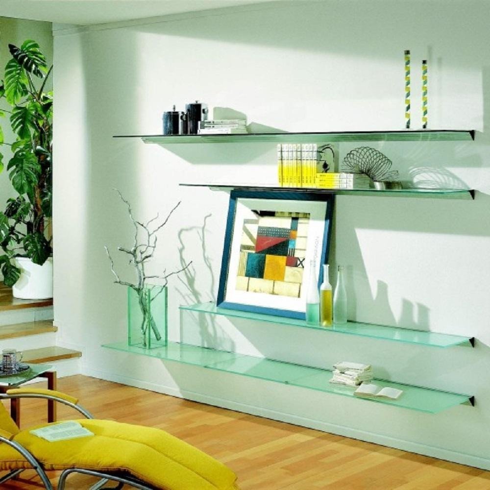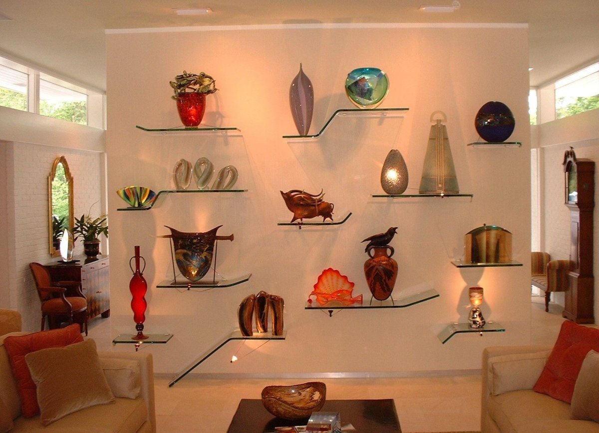 Стеклянные полочки на стену в гостиной